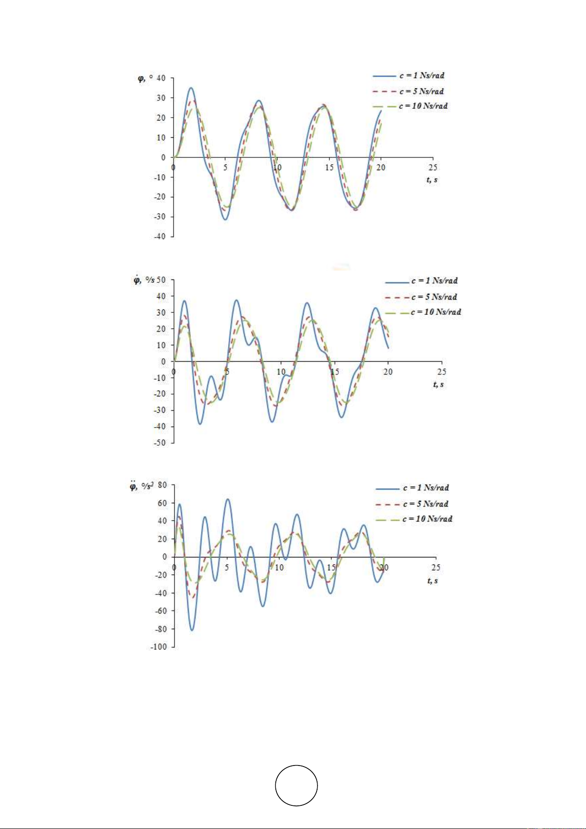 Figure 6 Angular acceleration of pendulum forced oscillations with different damping coefficients