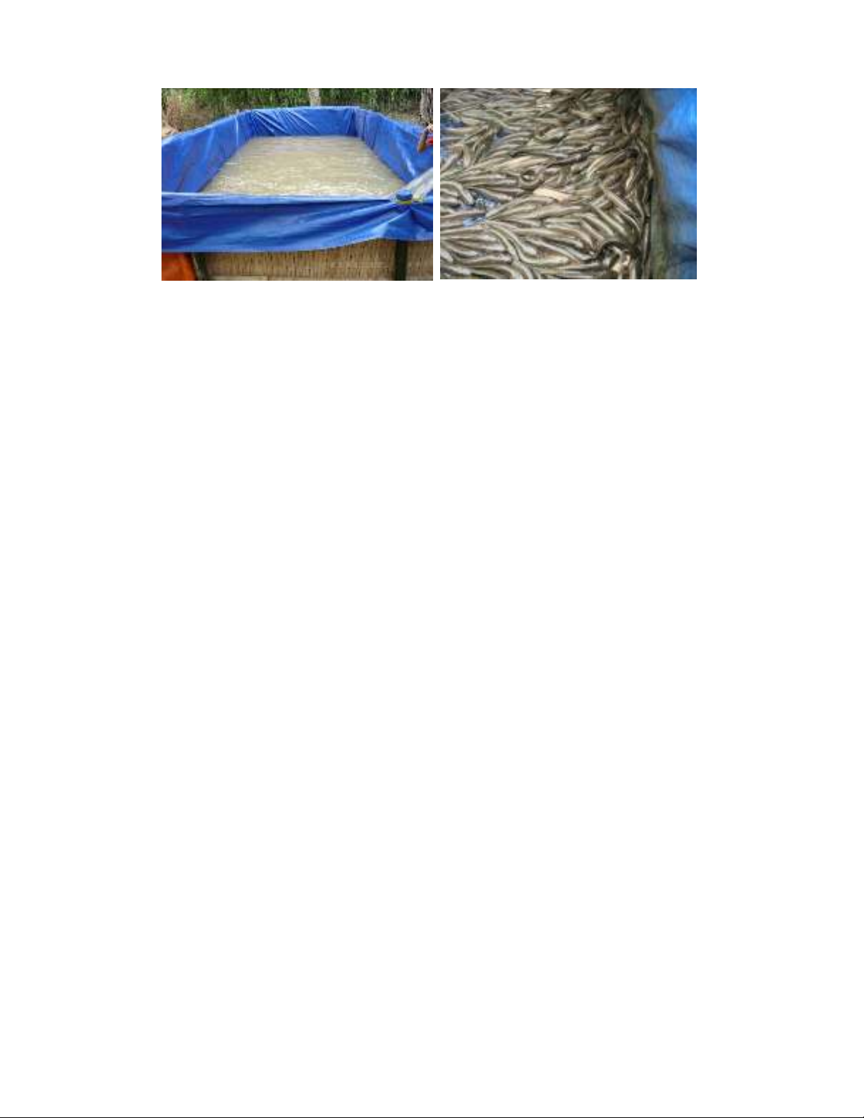 Hình 2: Bể lót bạt và cá lóc nuôi trong bể lót bạt