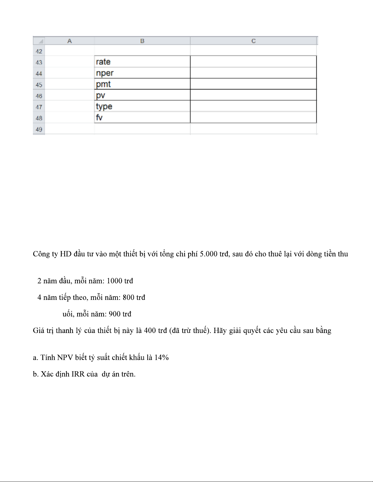 liên tiếp. Dự án có tỷ suất sinh lời 16%/năm. Tính kết quả đầu tư sau 5 năm.