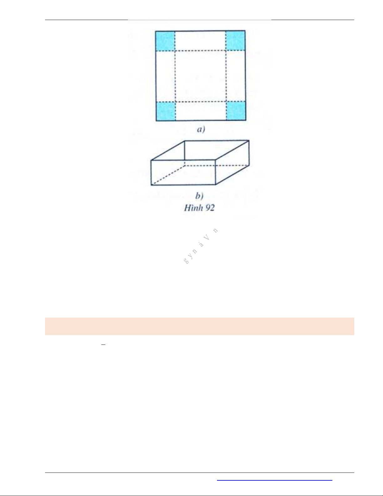 Ví dụ 4. Từ một tấm bìa hình vuông (Hình 92a), người ta cắt ở bốn góc của tấm bìa đó bốn hình