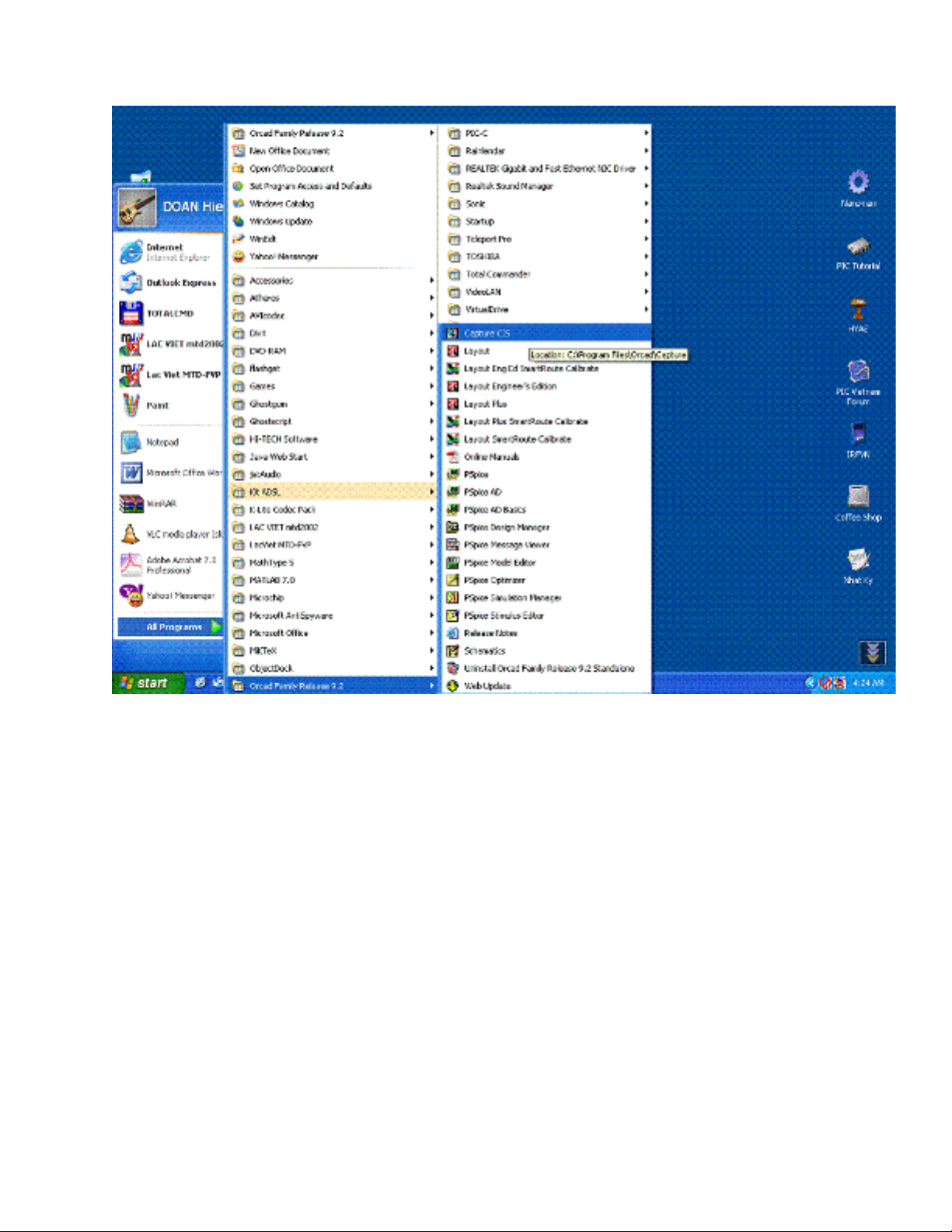 Trước tiên, các bạn khởi động ORCAD với chương trình CAPTURE hoặc CAPTURE CIS đều như