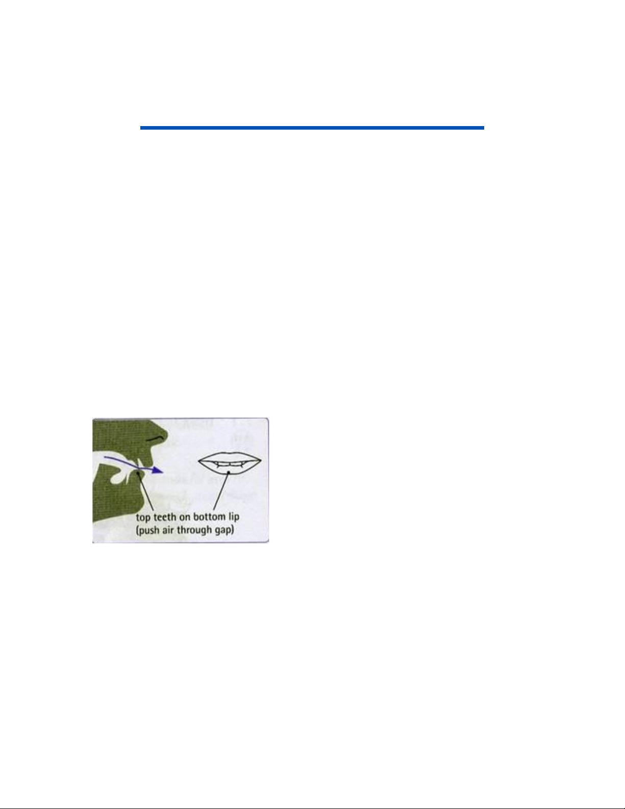 Âm được đi ra từ khe hở tạo ra giữa môi và răng. Lưu ý rằng khi phát âm
