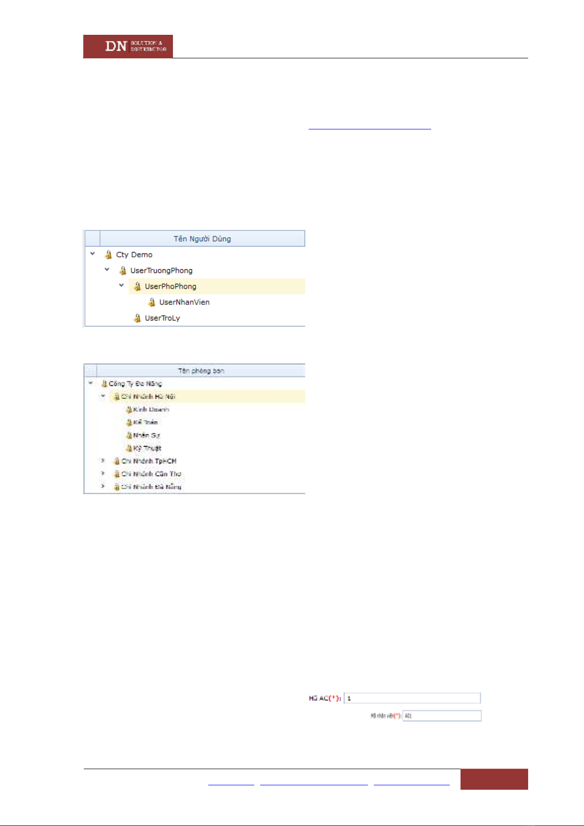Hình minh họa: : Cây thư mục Chi nhánh/Phòng ban.