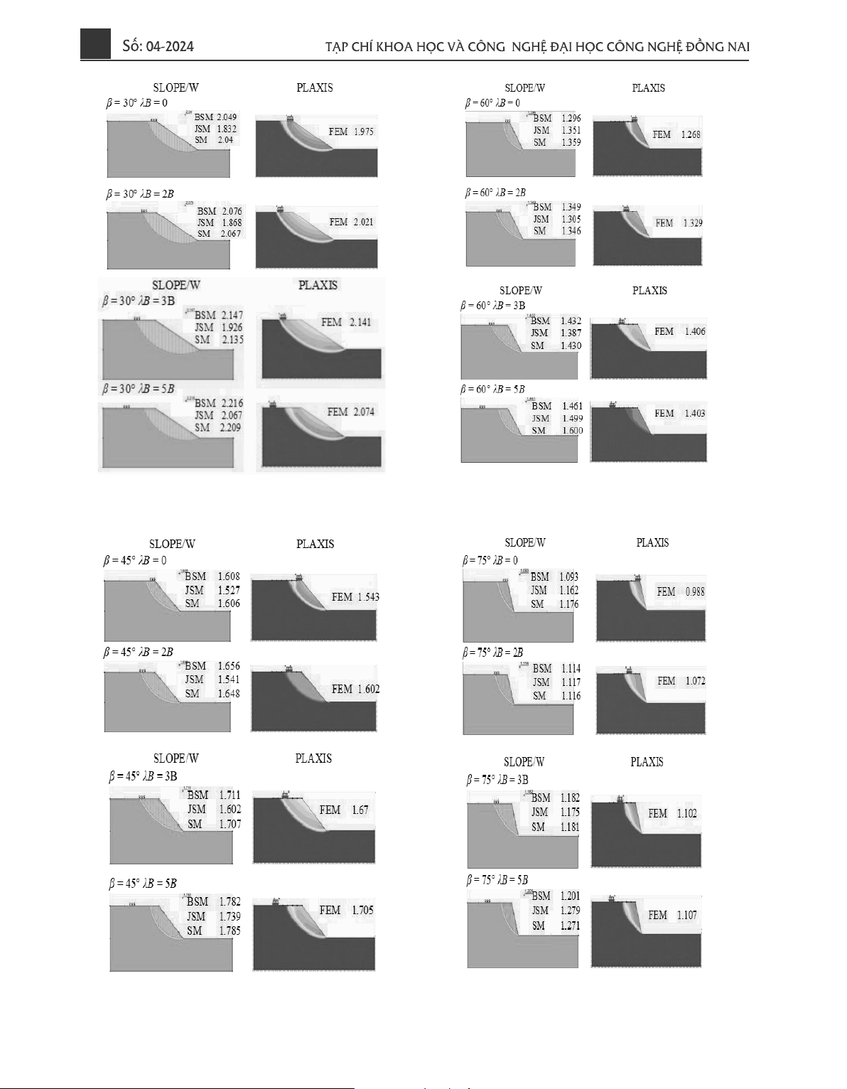 ꞵ = 75°, ꞵ = 90°, phương pháp của Janbu (JSM)