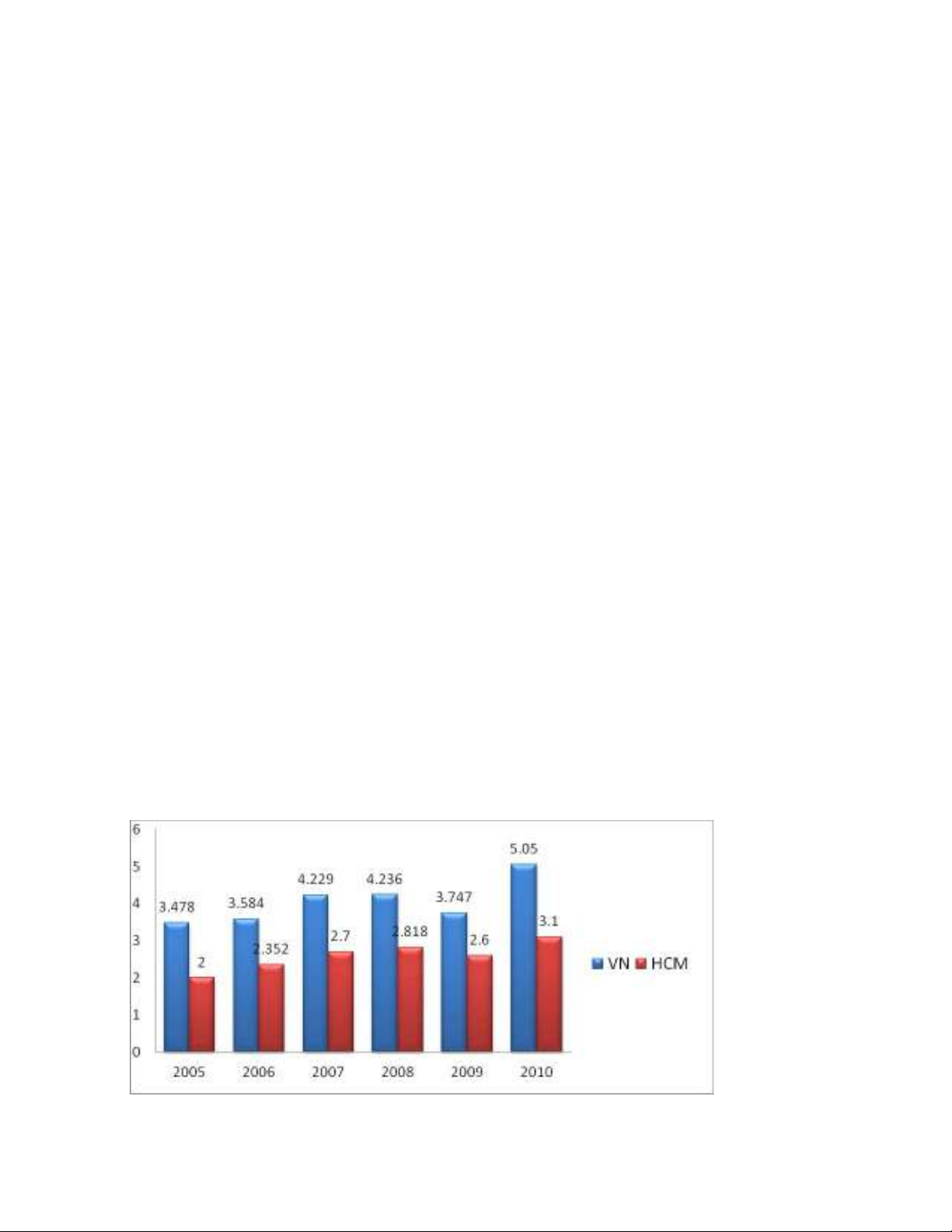 Tp.HCM nói riêng đếu tăng, chỉ có trong năm 2009 giảm 7% so với 2008 (năm 2009 đạt 3.7