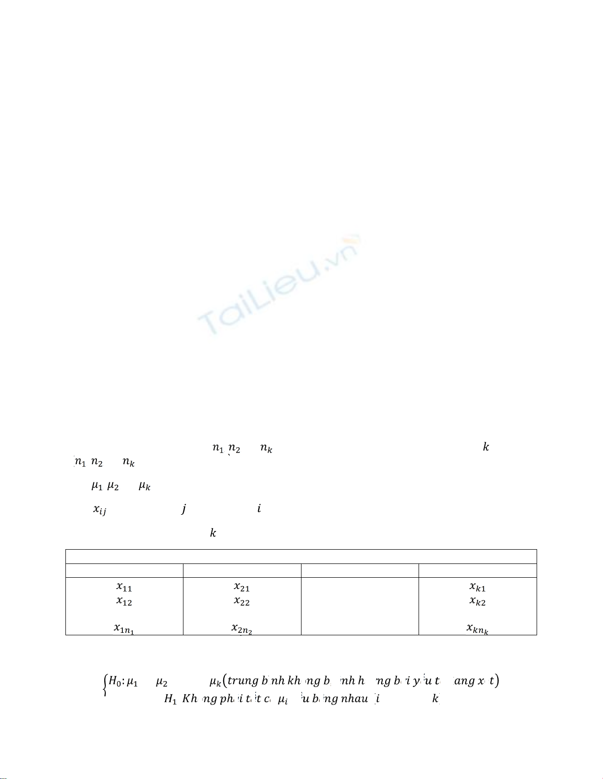 Giảsửta có k- nhóm (mẫu); , ,…, quan sát được chọn ngẫu nhiên độc lập từtổng thể