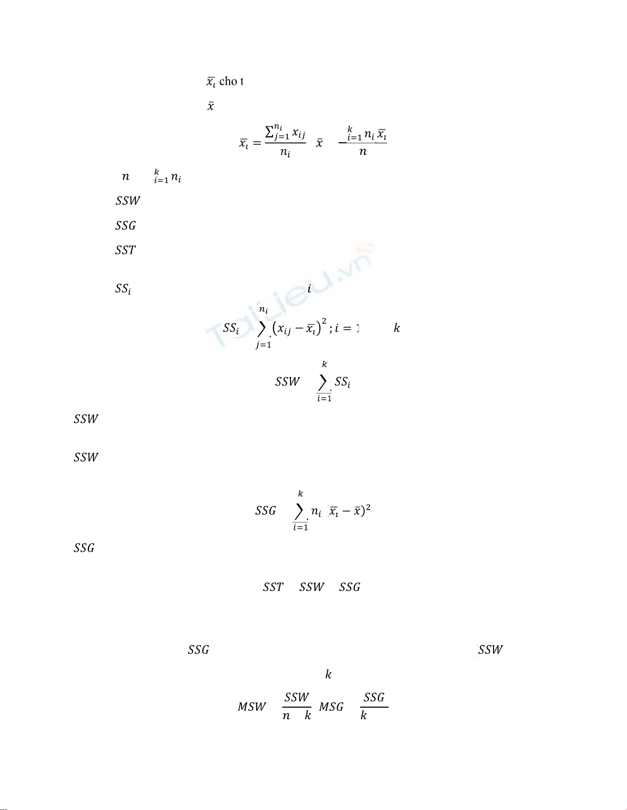 Công thức này chính là cơ sở của phương pháp phân tích phương sai một yếu tố: