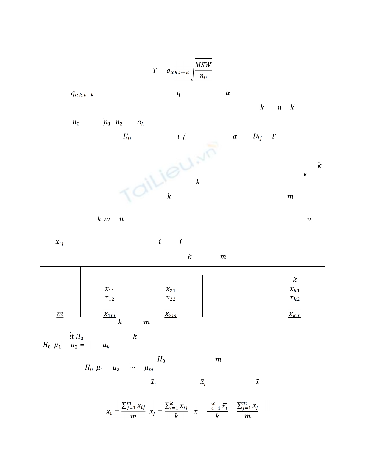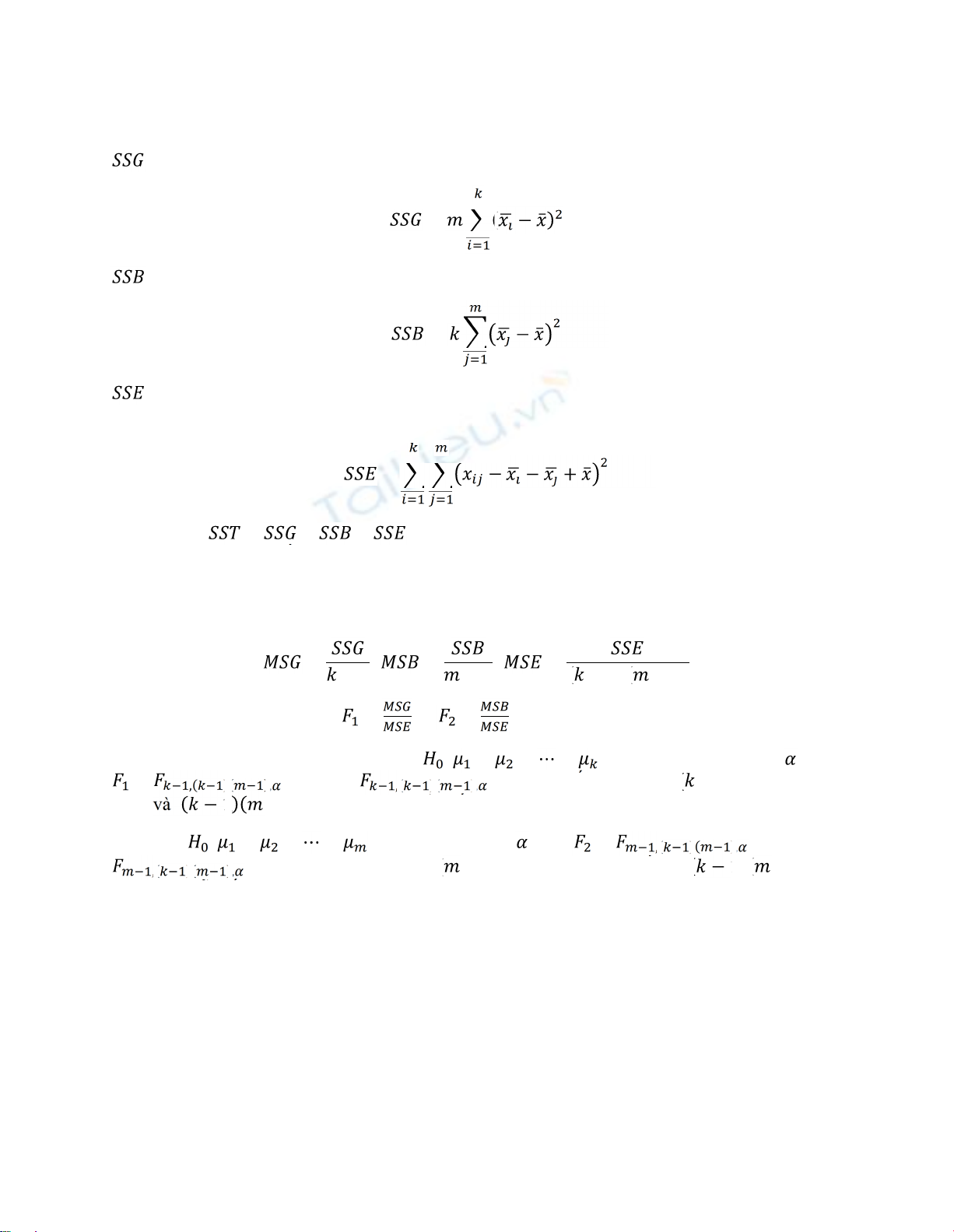 Khi đó ta có = + + . Đây chính là cơ sở phân tích phương sai hai yếu tố(khối