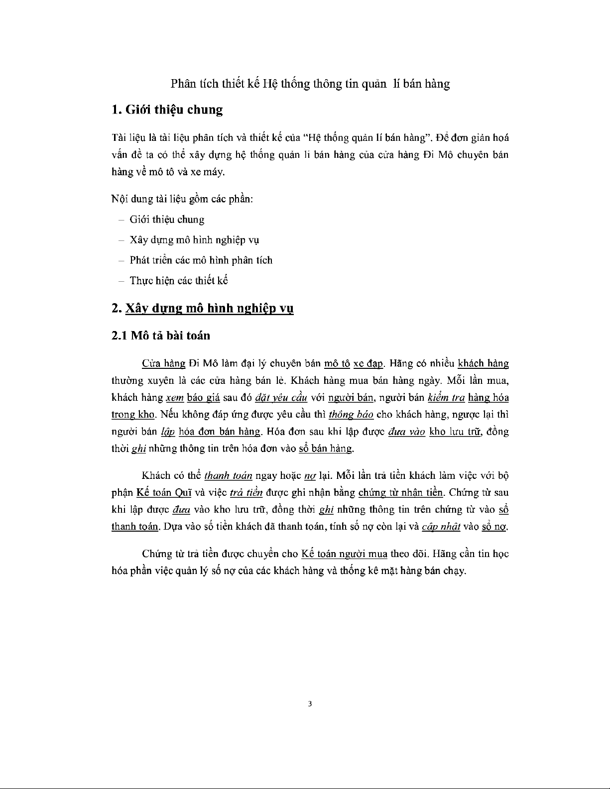 Phân tích thiết kế Hệ thống thông tin quản lí bán hàng - Luận văn, đồ án, đề tài tốt nghiệp