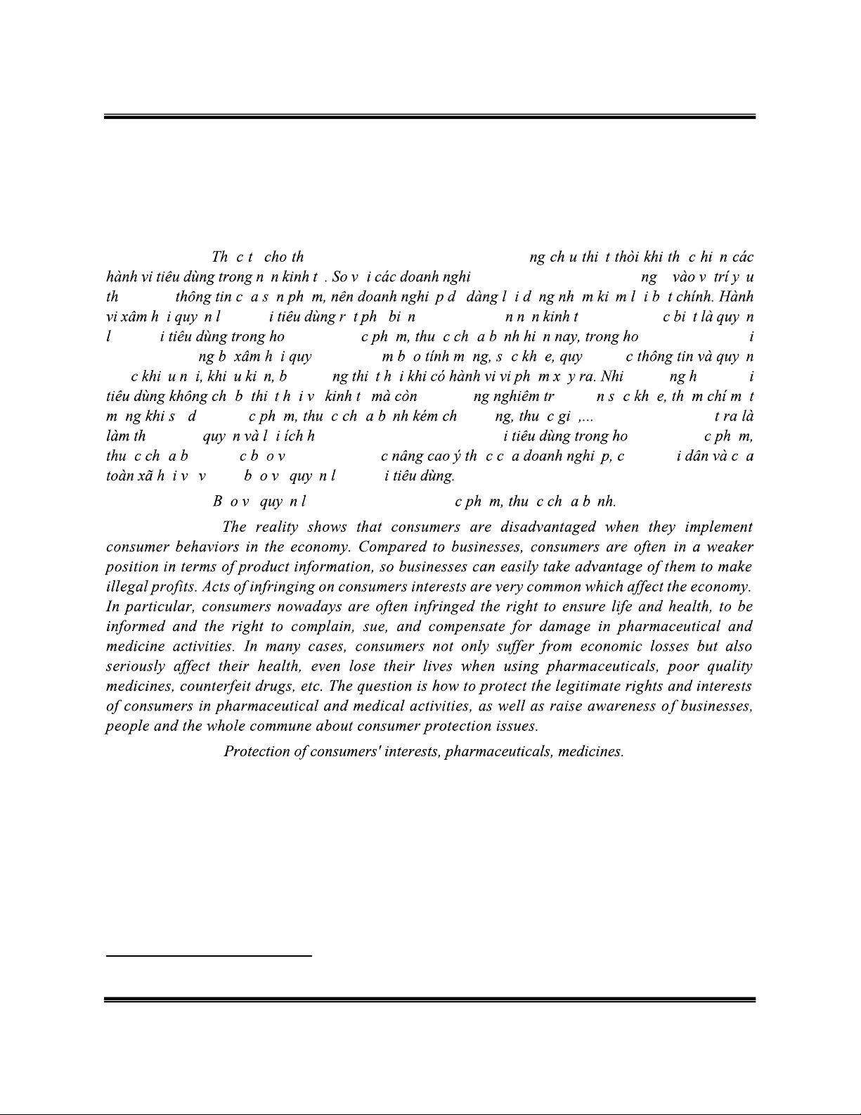 quyết. Bởi lẽ trên thực tế quyền lợi người tiêu dùng trong hoạt động dược phẩm, thuốc chữa bệnh bị