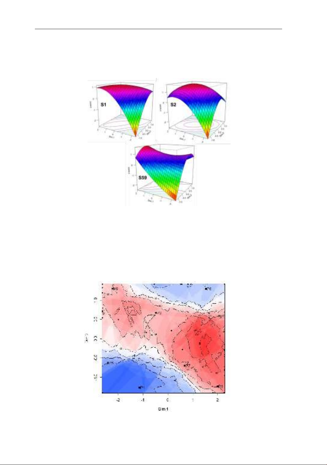 Hình 3 minh họa bề mặt đáp ứng của người thử S1, S2 và S59 đối với 8 sản phẩm mẫu