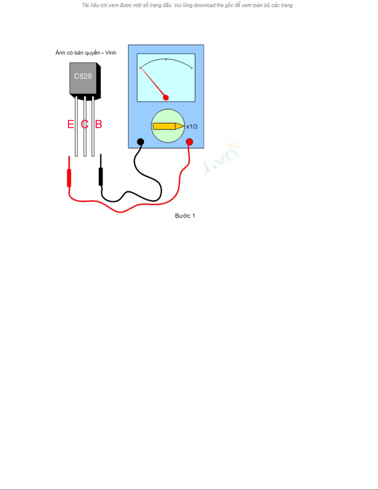 Bước 2 và 4 : Đo cả hai chiều giữa C và E kim lên = 0 Ω