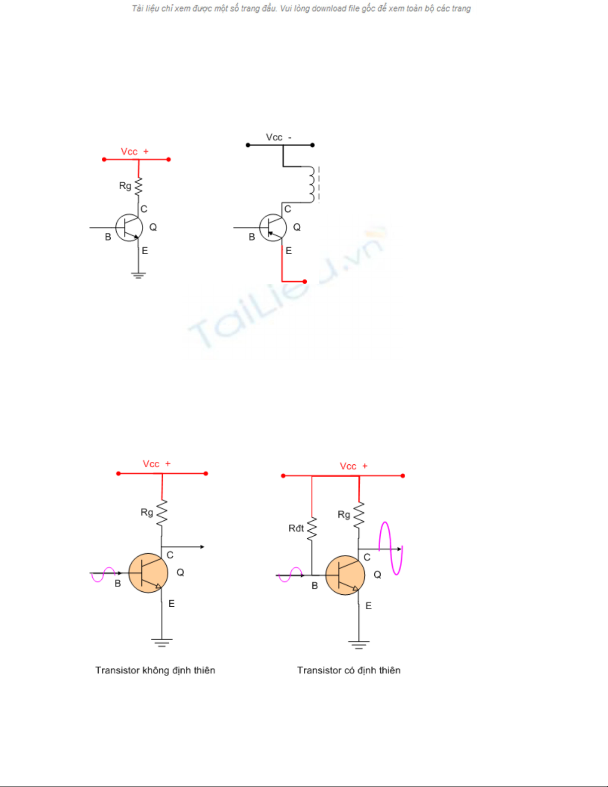 Ở sơ đồ thứ 2 , Transistor có Rđt định thiên => có dòng IBE, khi đưa tín hiệu nhỏ vào chân B =>