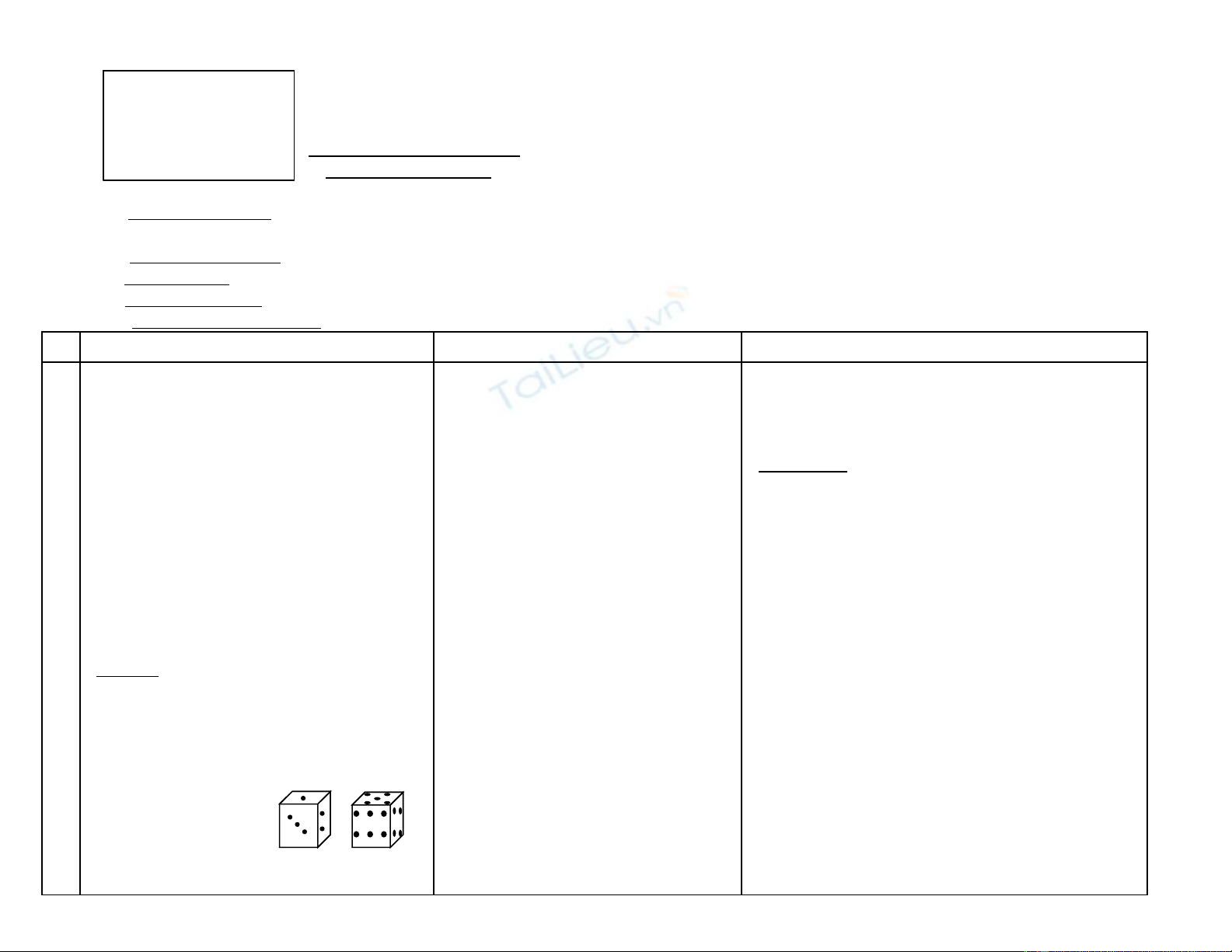 *Ví duï : Trong moät pheùp thöû “ Gieo