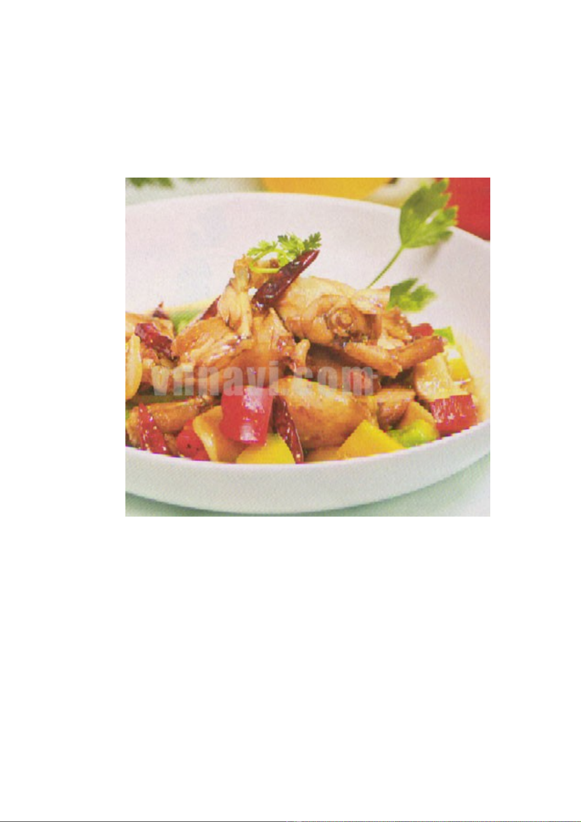 - Đun nóng dầu, phi thơm gừng, cho ếch vào, rán vàng.
