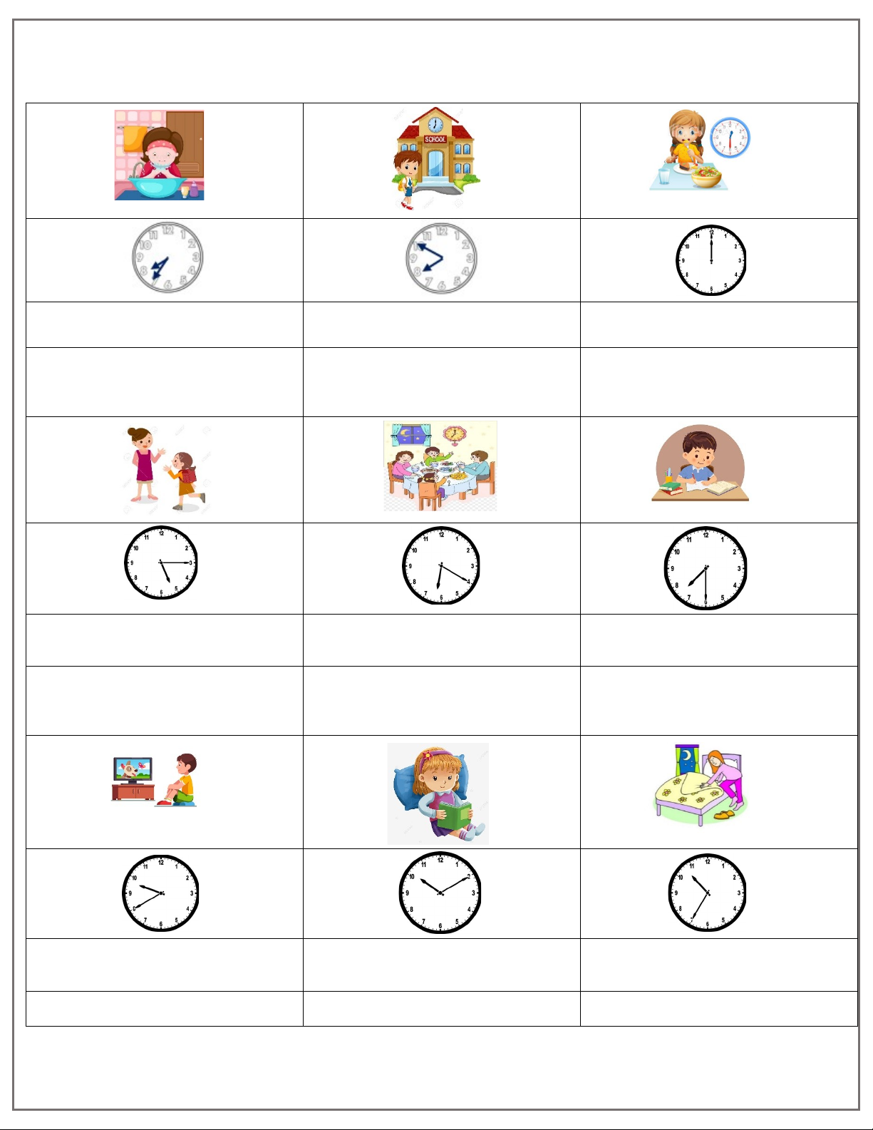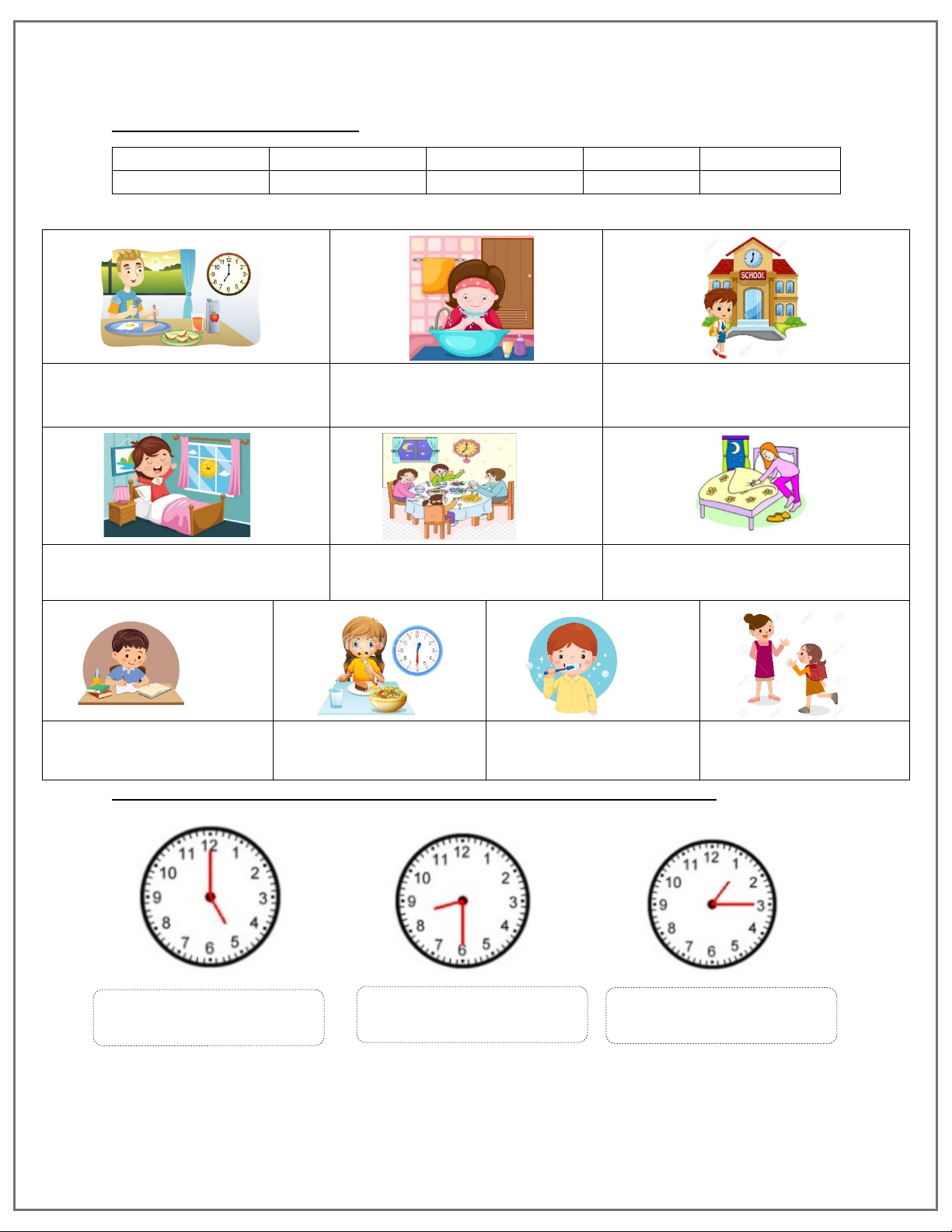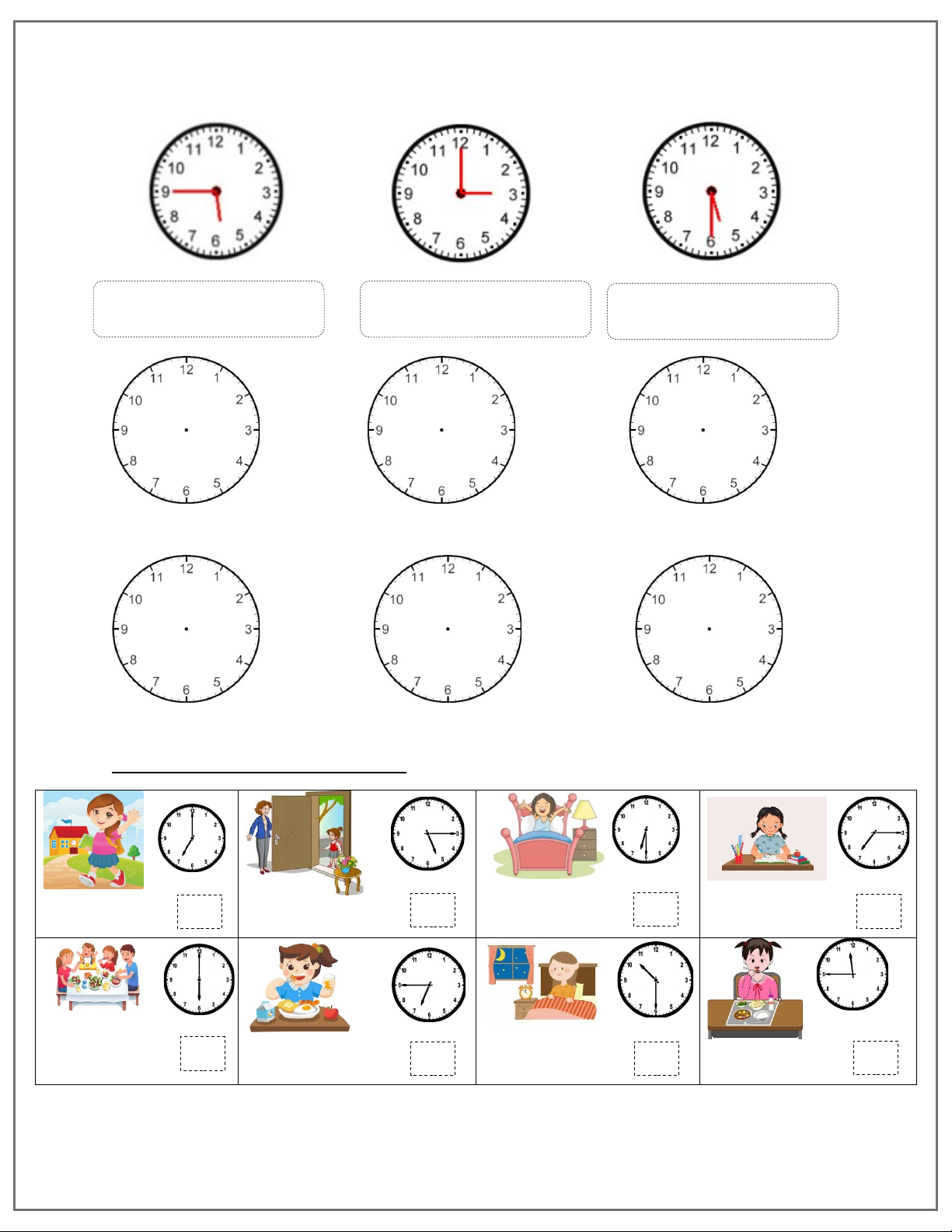 2. I have dinner at six o’clock. 6. I do my homework at seven fifteen.