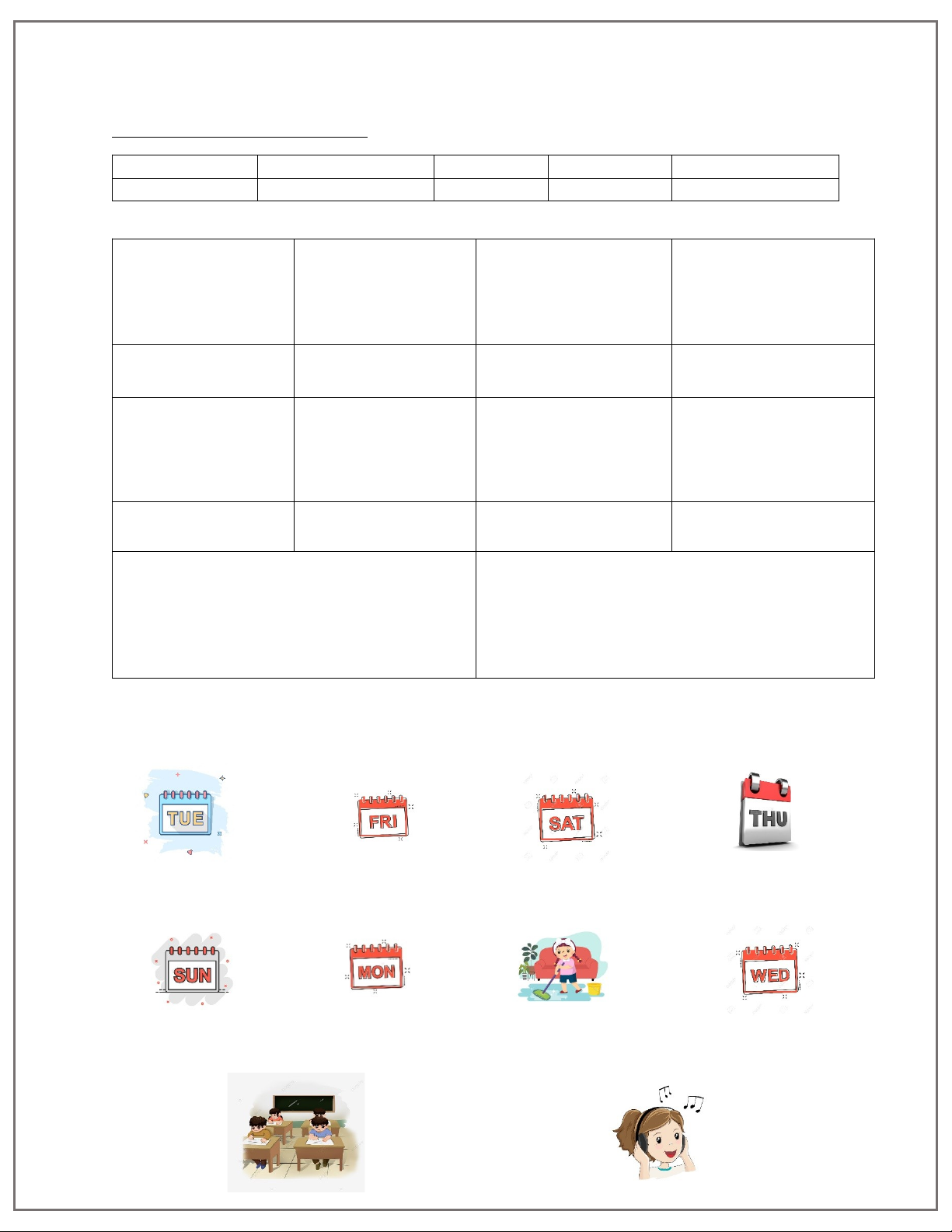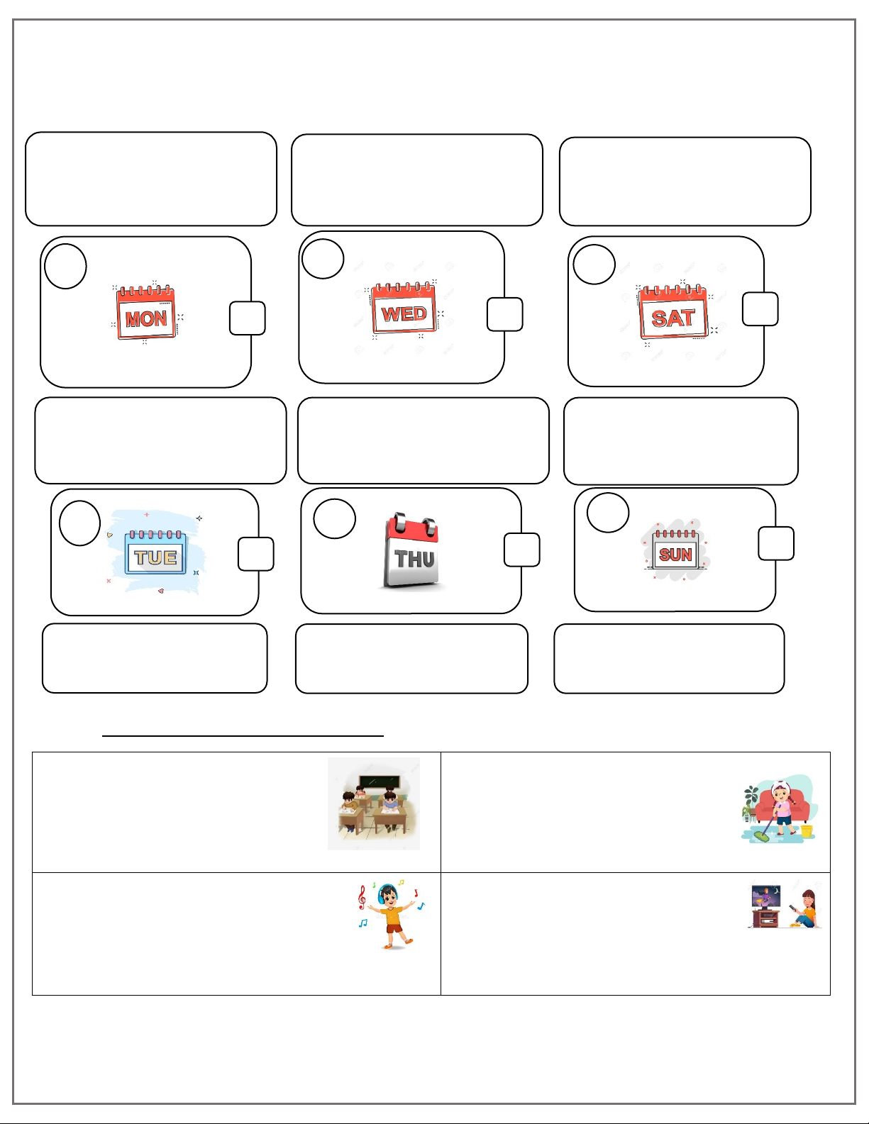 Saturday do housework Monday Sunday Thursday