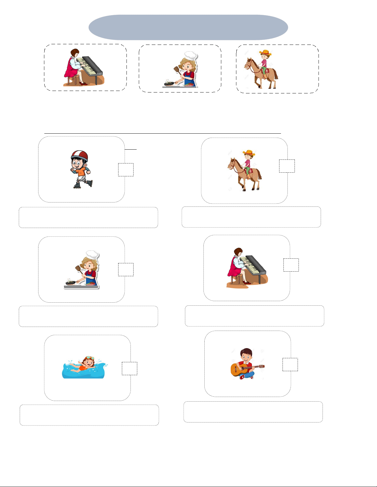 a) I can draw. a) I can ride a horse. a) I can play the piano.
