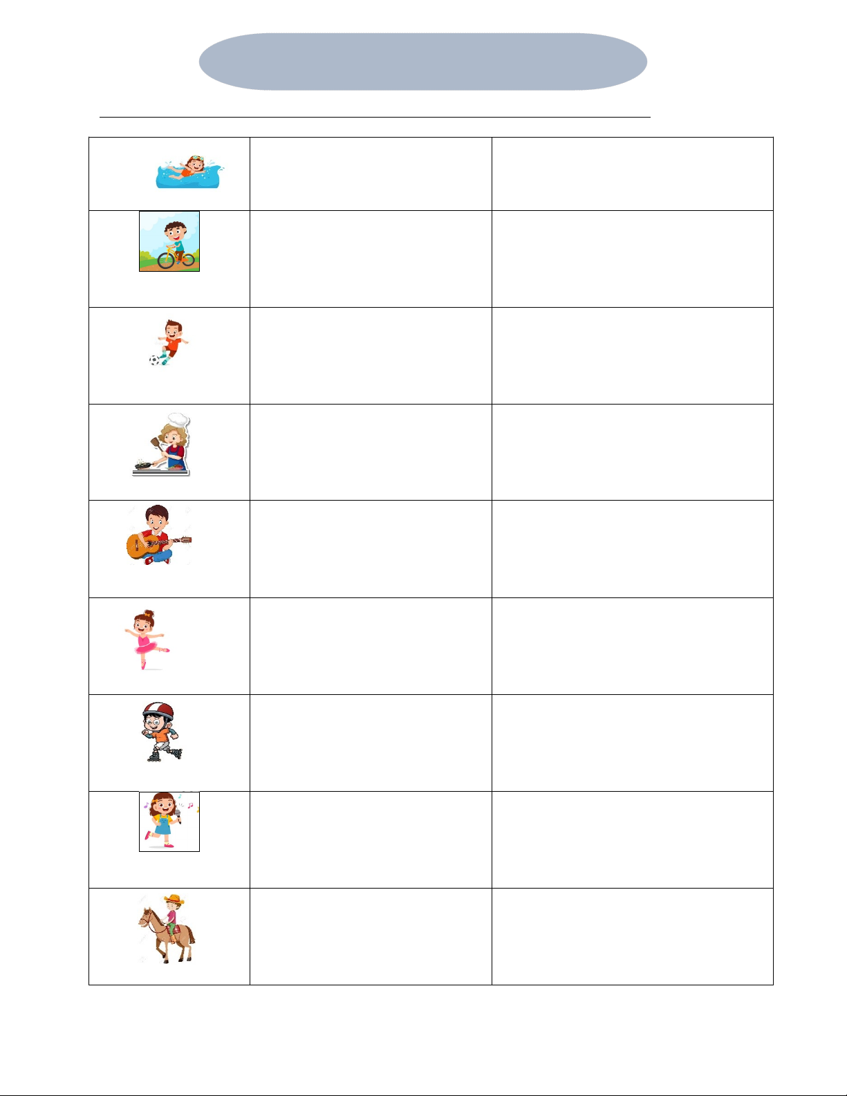 b) I can ride a bike. b) I can roller skate. b) I can play the guitar.