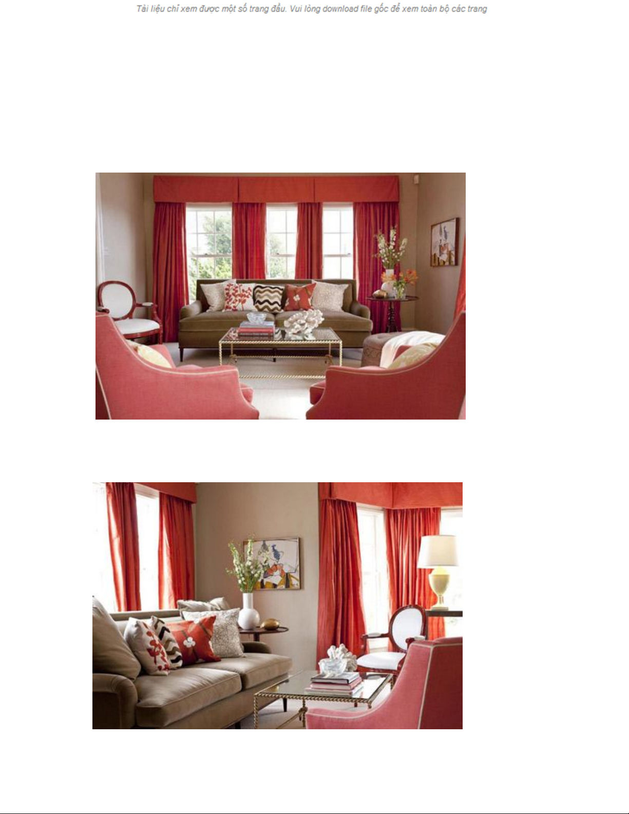 cúng cho phòng khách. Để làm dịu bớt sắc đỏ, bạn có thể phối thêm màu ghi nhạt,