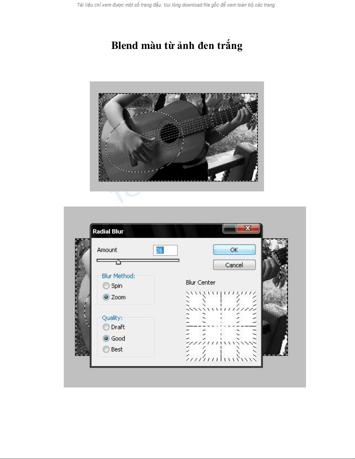 5- Bây giờ các bạn chọn : Filter\Blur\Radial Blur với các giá trị: