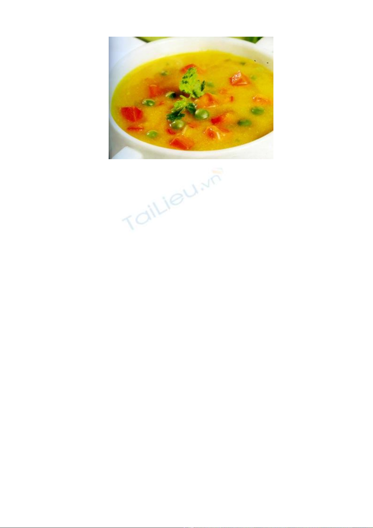 nhuyễn, nêm hạt nêm cho vừa ăn. Bày súp ra chén, cho đậu bo, cải bó xôi, cà rốt vào.