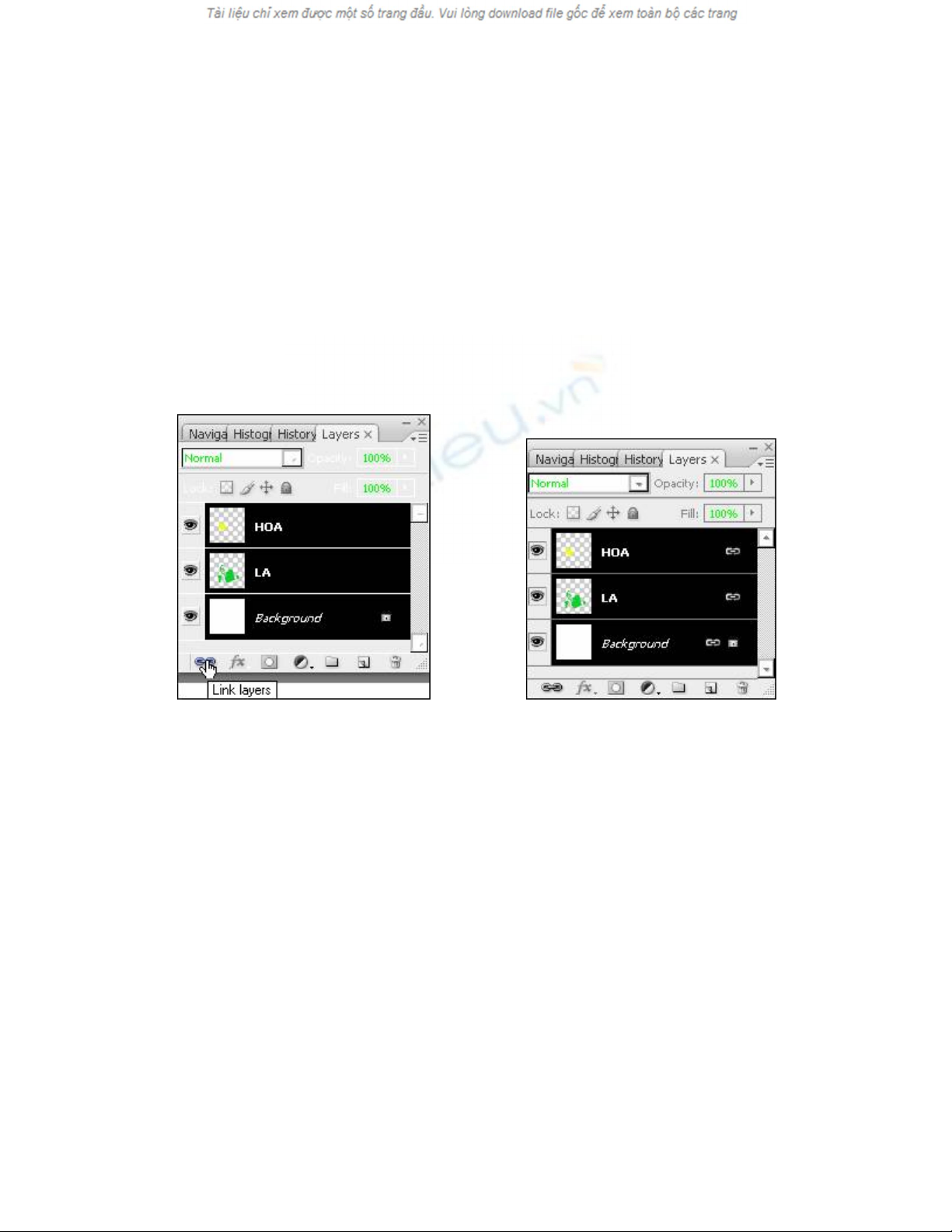 lại. Nhấn giữ phím Shift đồng thời nhấp chọn tất cả các layer, rồi nhấp vào biểu tượng Link