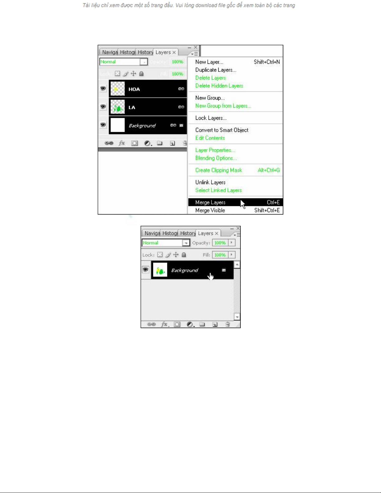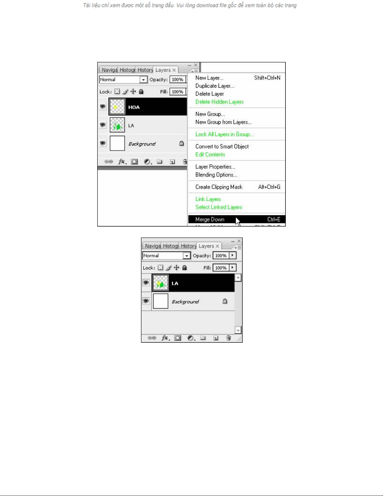 Lệnh Merge Down cho phép trộn hai layers nằm sát nhau trong bảng Layers. Bạn