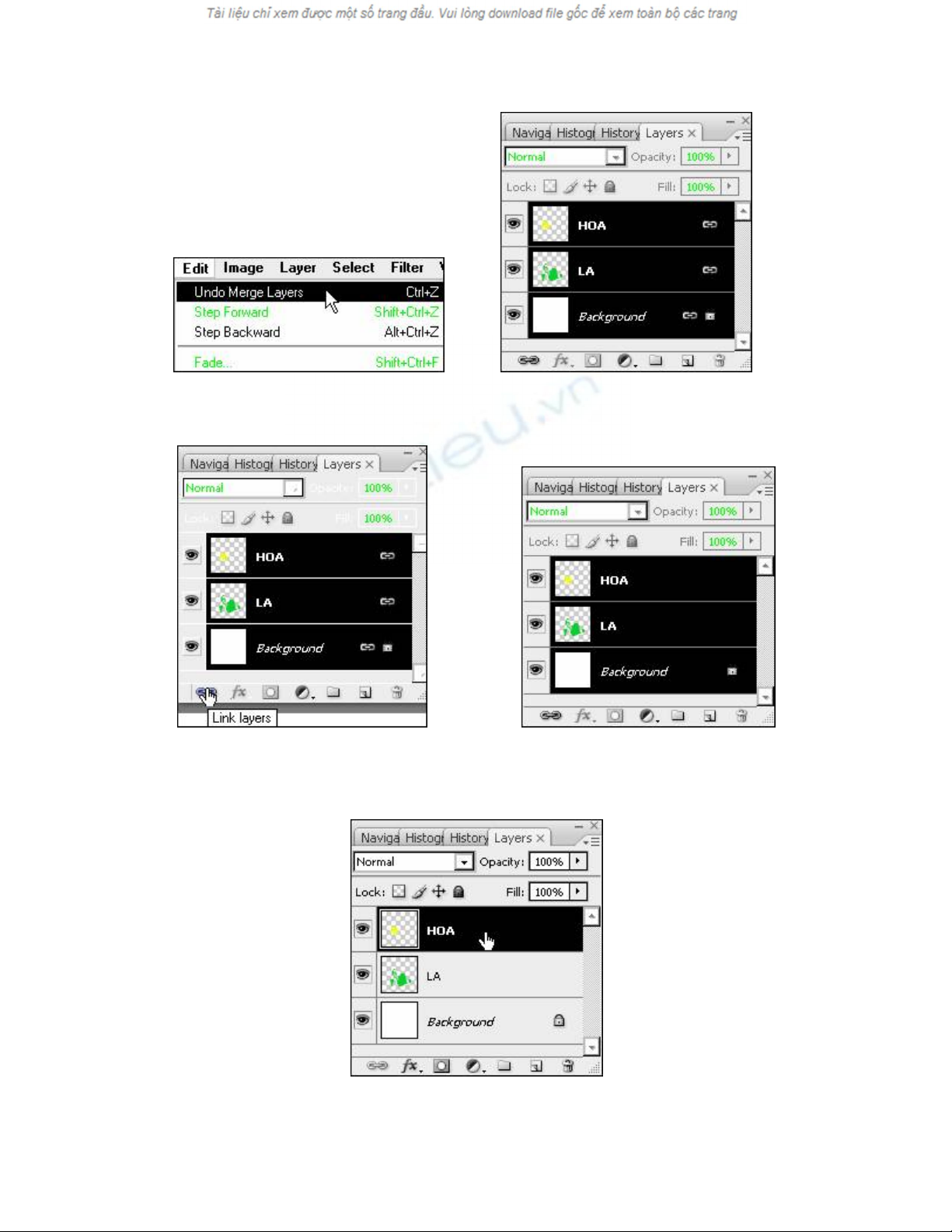 Nếu muốn trộn tất cả các layer trên bảng Layers, thì trước hết phải liên kết các layer này