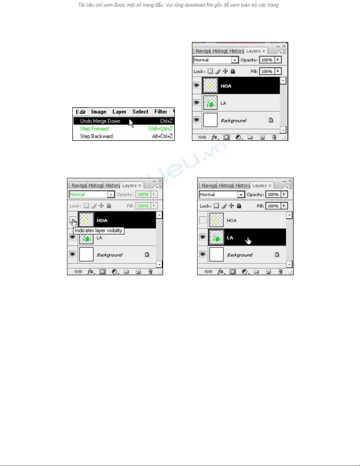 phím Ctrl + Z) phục hồi lại thao tác trước đó (lúc chưa chọn lệnh Merge Down).