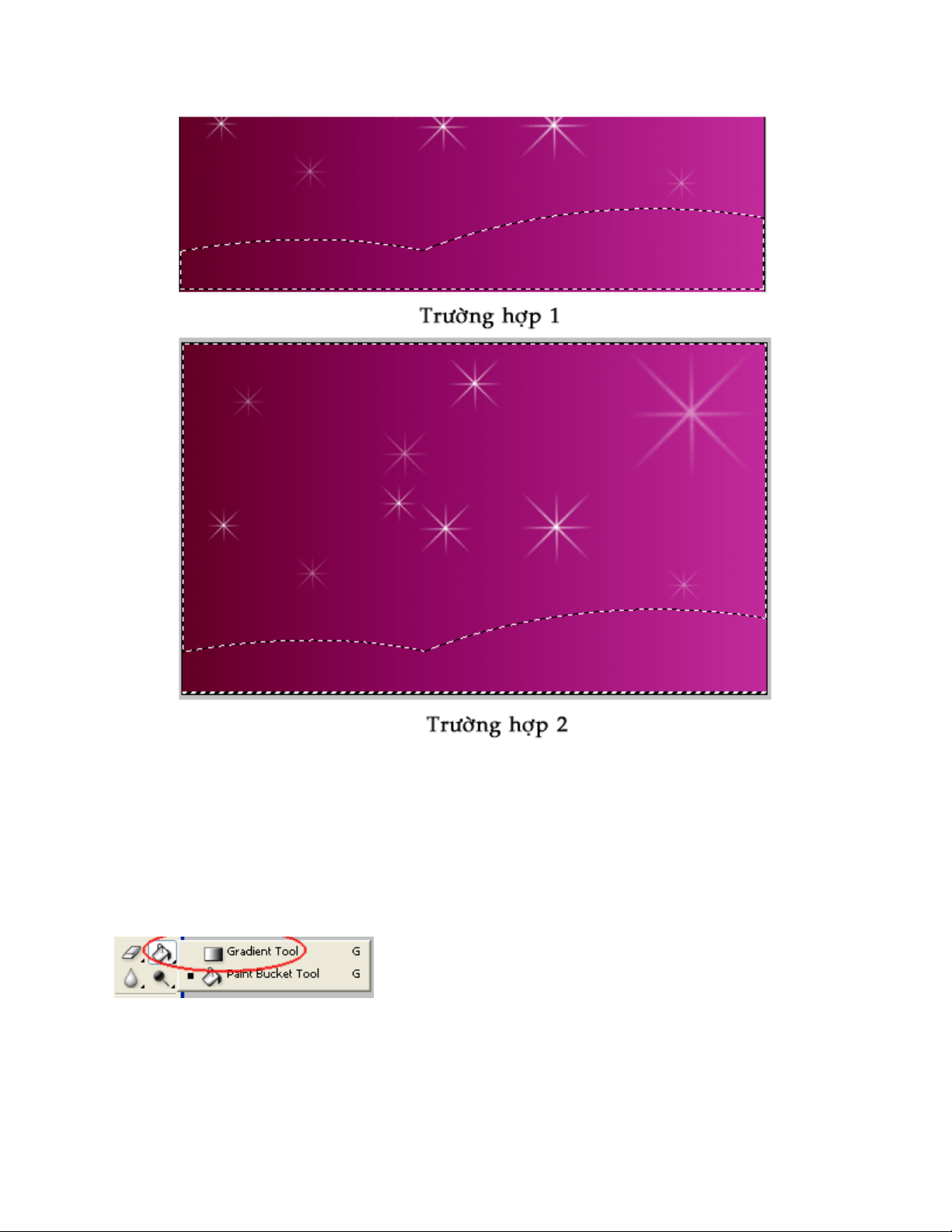 - Sau khi thiệt lập mầu cho vùng chọn, bạn tiến hành đổ mầu bằng cách khéo chuột từ phía trên