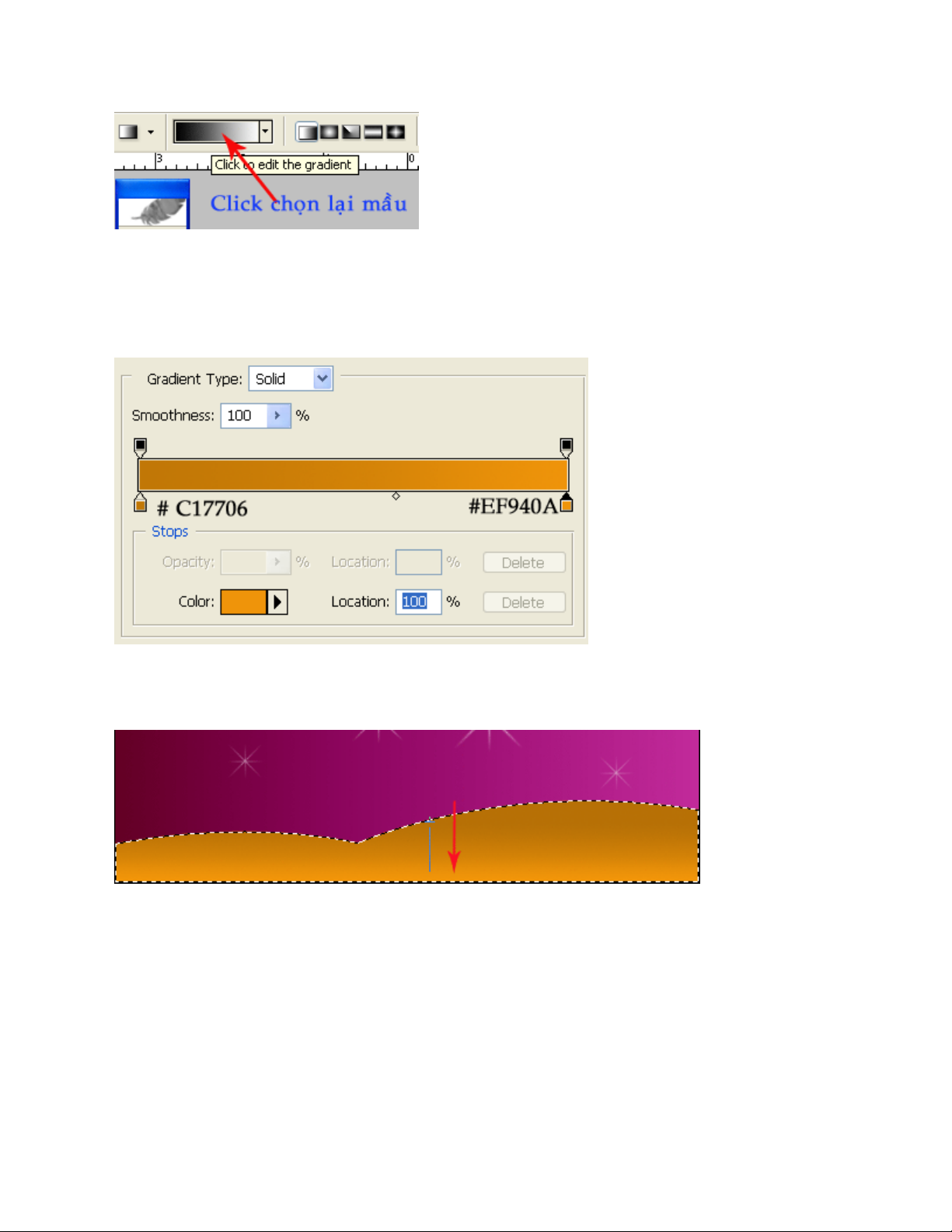 - Trên thanh Option: click Set to edit the gradient để chọn lại mầu