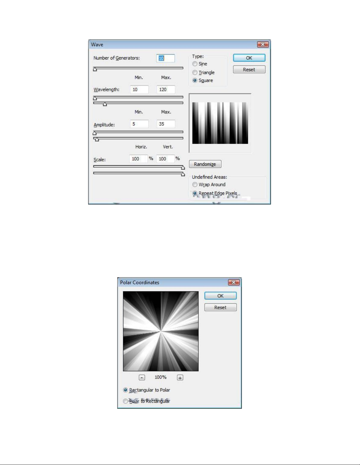 ra, thiết lập tỉ lệ là 100% và check tùy chn Rectangular to Polar