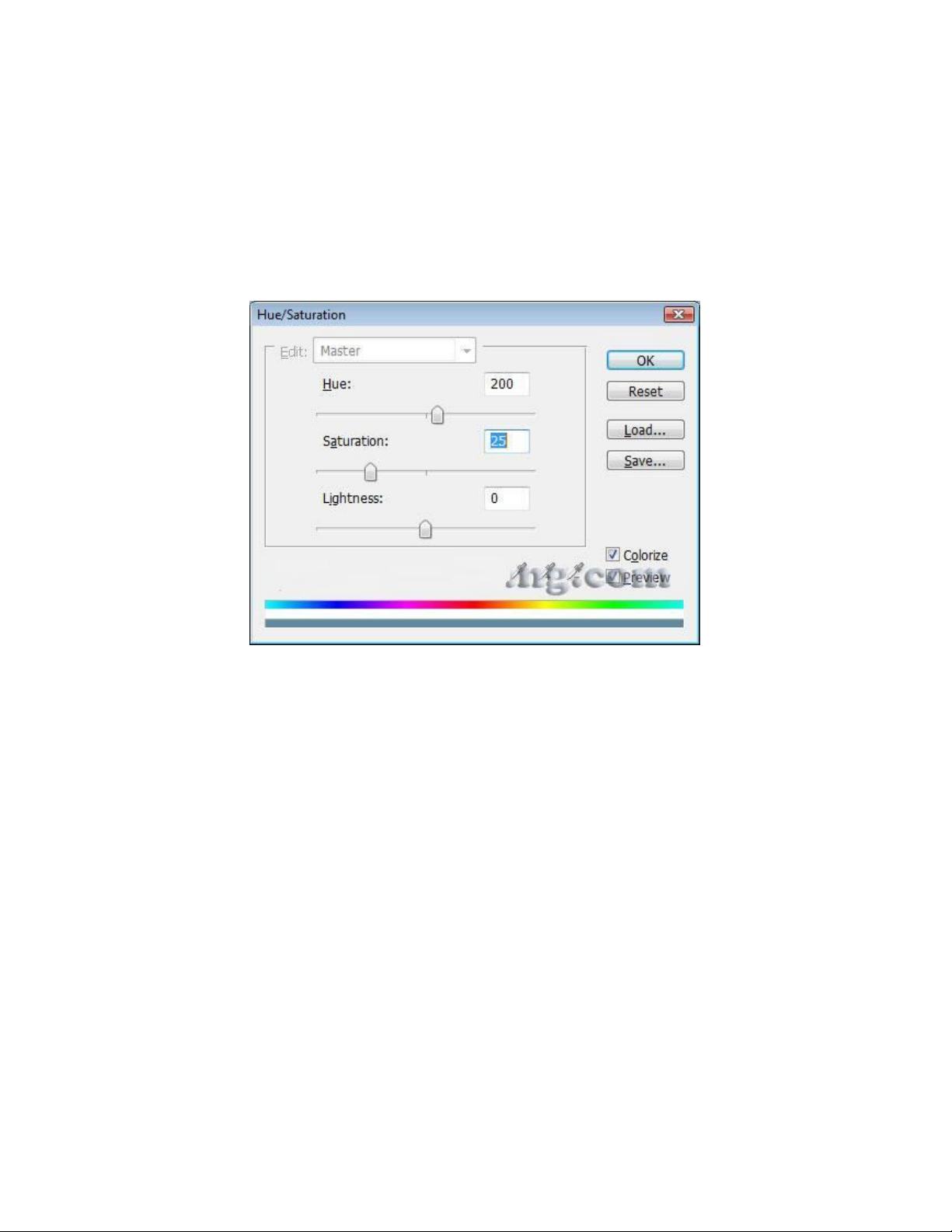 Colorize, sau đó thay đổi thiết lập tuần tự như sau: Hue: 200,