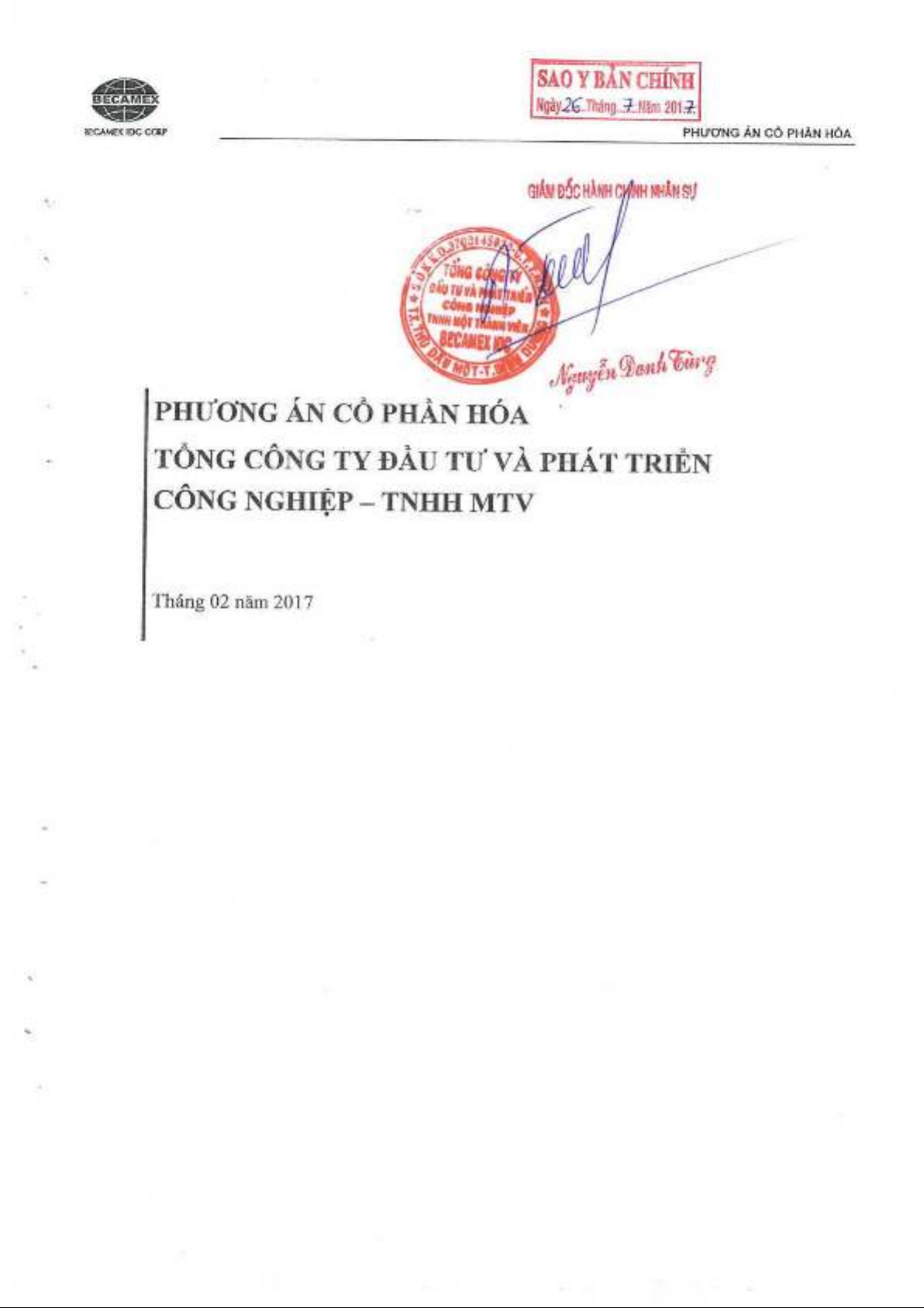 Phương án cổ phần hóa Tổng Công ty Đầu tư và Phát triển công nghiệp - TNHH MTV