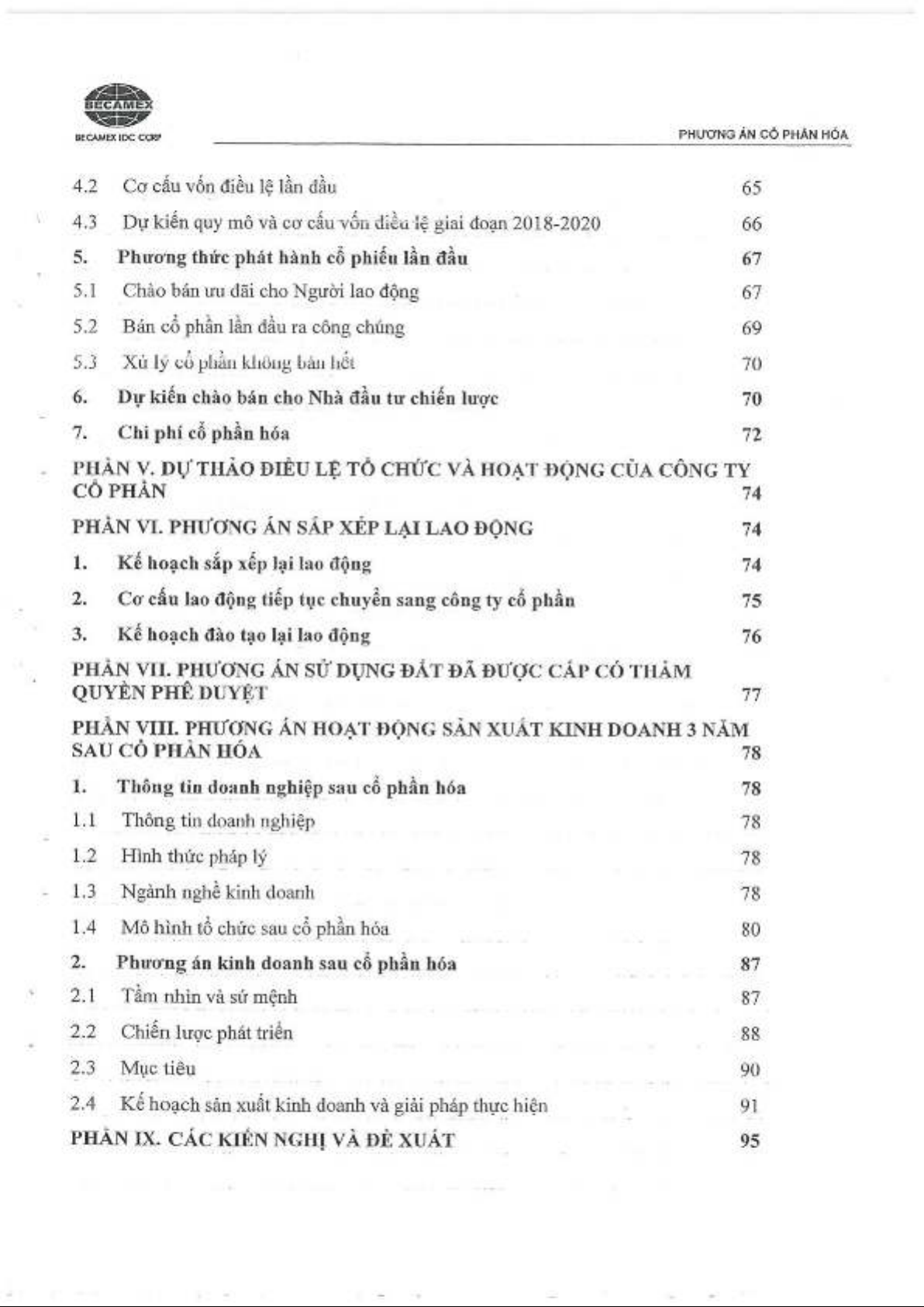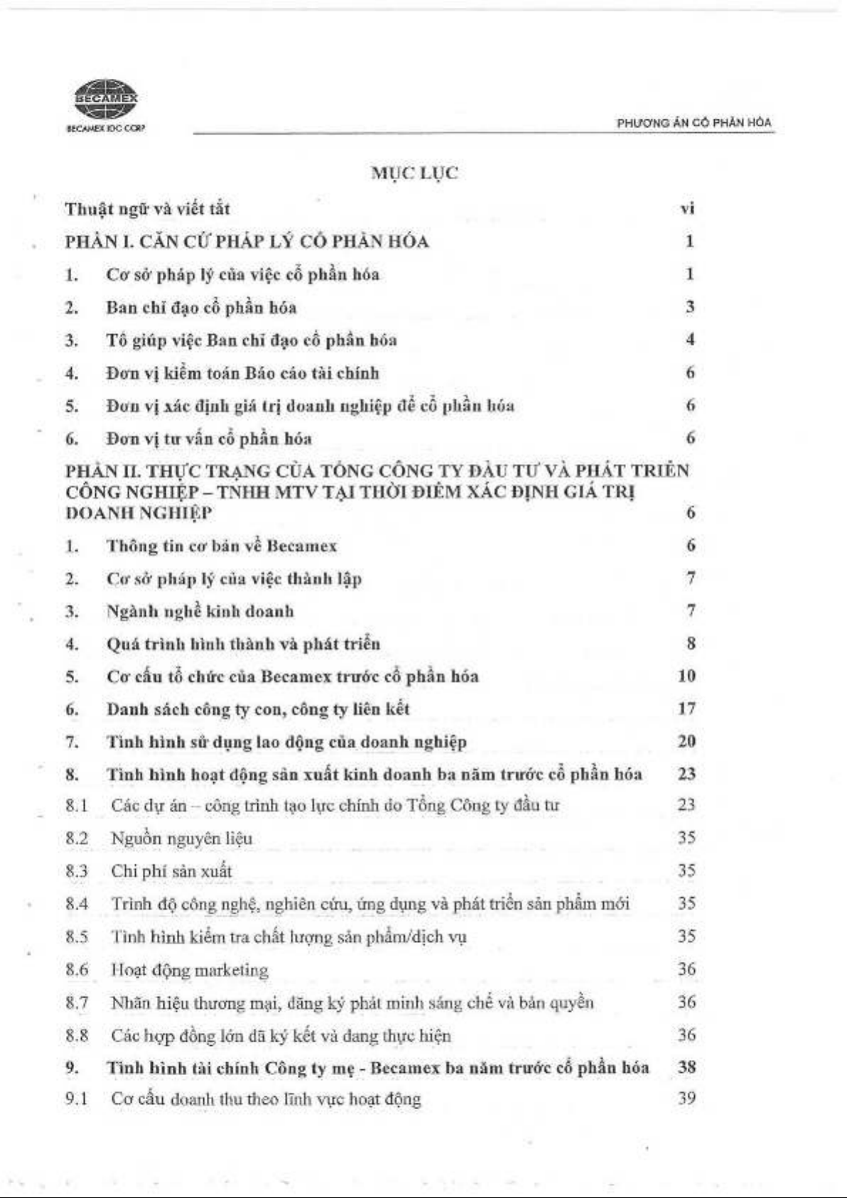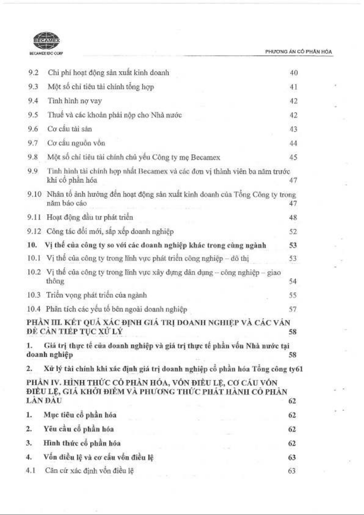 Tài liệu gồm các phần chính: Phần 1. Căn cứ pháp lý cổ phần hóa; Phần 2. Thực trạng của Tổng Công ty Đầu tư và Phát triển công nghiệp - TNHH MTV tại thời điểm xác định giá trị doanh nghiệp; Phần 3. Kết quả xác định giá trị doanh nghiệp và các vấn đề cần tiếp tục xử lý; Phần 4. Hình thức cổ phần hóa, vốn điều lệ, cơ cấu vốn điều lệ, giá khởi điểm và phương thức phát hành cổ phần lần đầu; Phần 5. Dự thảo điều lệ tổ chức và hoạt động của Công ty Cổ phần; Phần 6. Phương án sắp xếp lại lao động; Phần 7. Phương án sử dụng đất đã được cấp có thẩm quyền phê duyệt; Phần 8. Phương án hoạt động sản xuất kinh doanh 3 năm sau cổ phần hóa; Phần 9. Các kiến nghị và đề xuất. Mời các bạn cùng tham khảo chi tiết nội dung tài liệu.