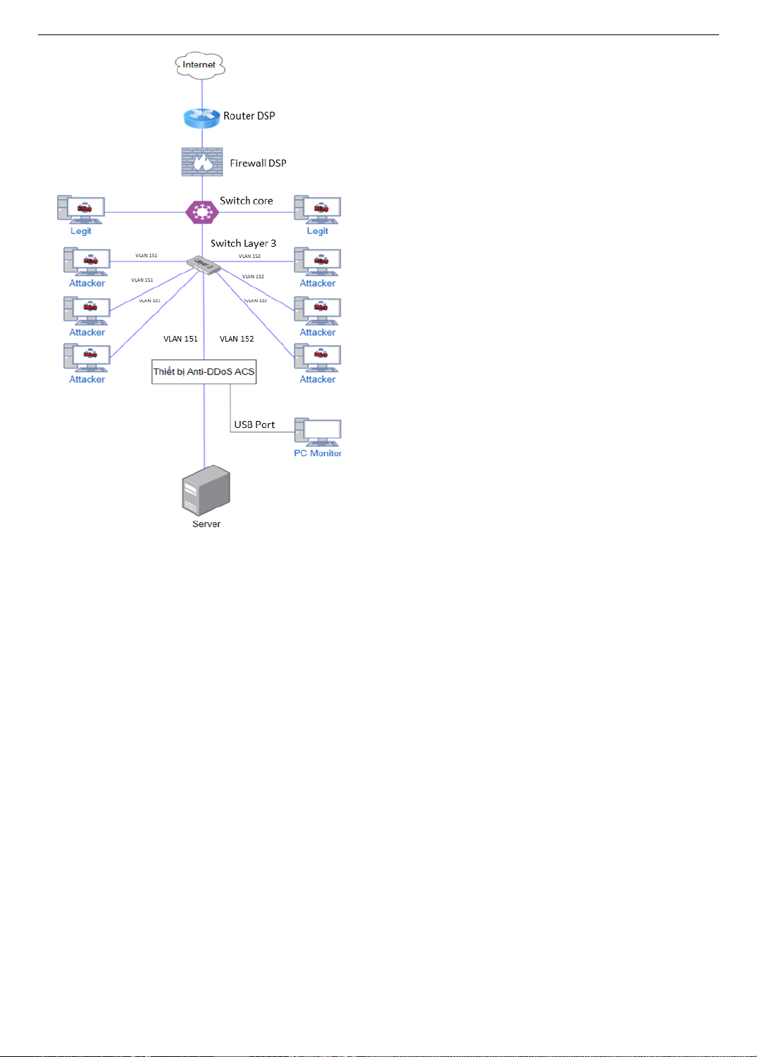 và các máy tấn công sử dụng Hping3 để tạo ra các kịch bản tấn