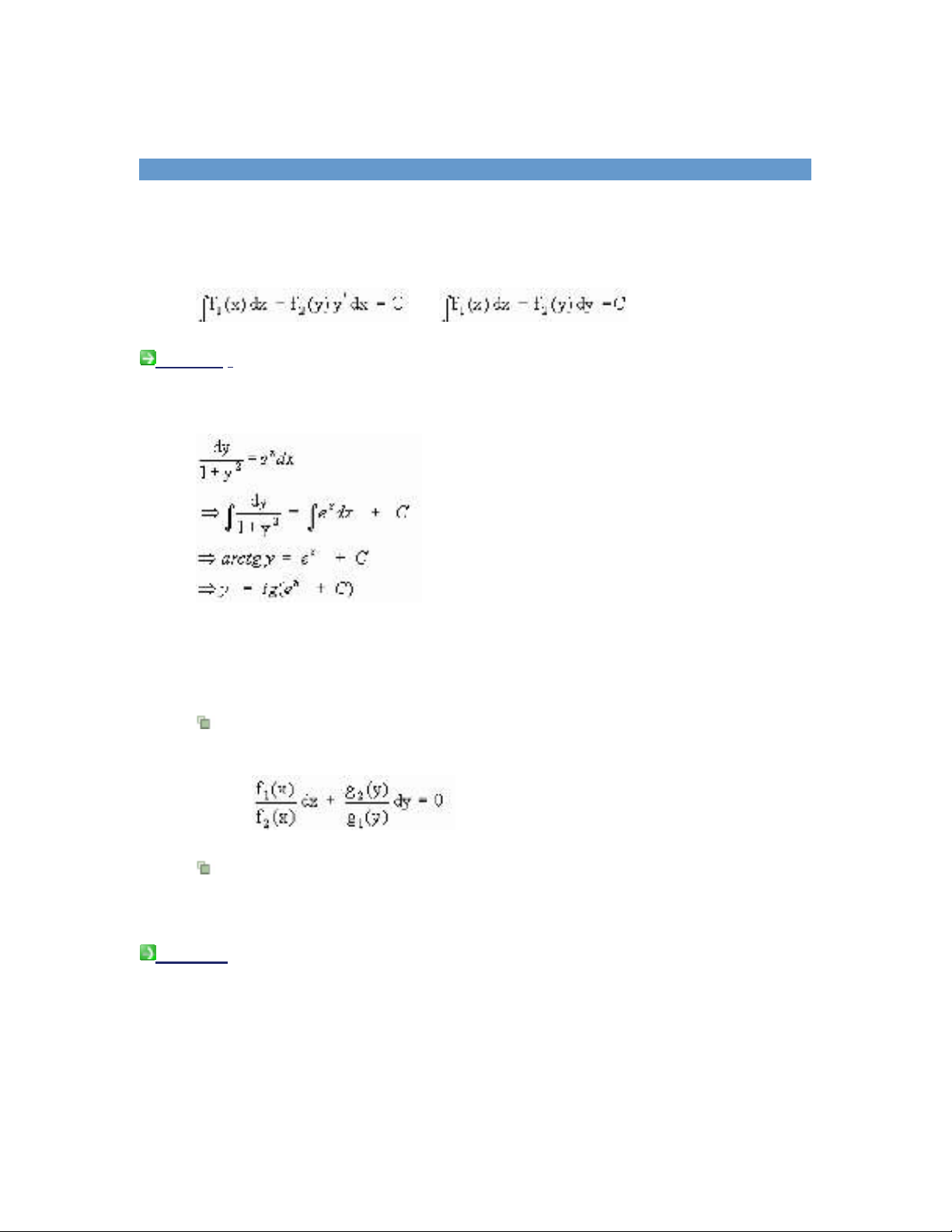 a) Là phương trình vi phân có dạng : f1(x) + f2(y).y’ = 0 hay f1(x)dx + f2(y)dy = 0 (1)