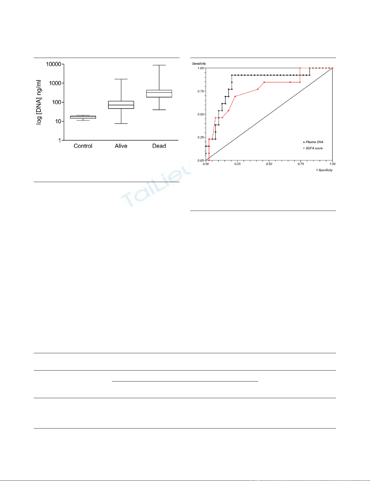 sive care outcome. The area under the curve for plasma DNA is 0.84