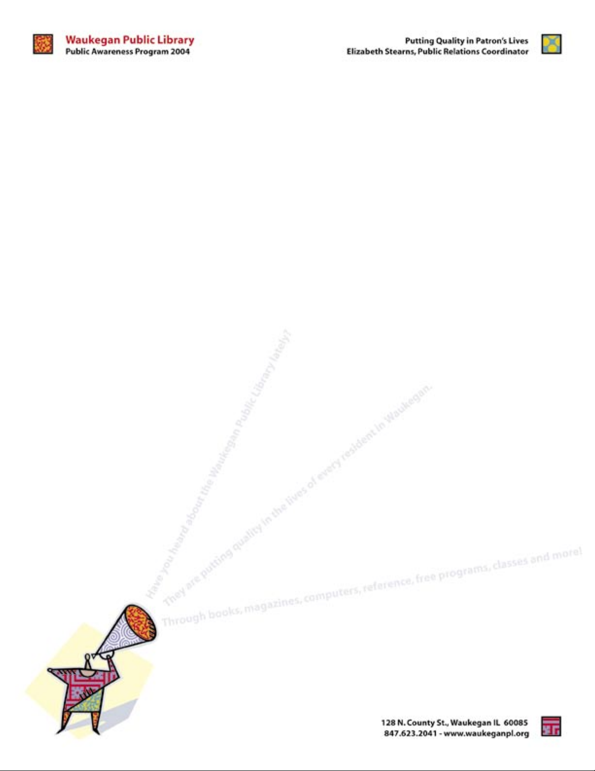 Goal: In 2004 the Waukegan Public Library will implement a public awareness campaign with the goal of updating the
