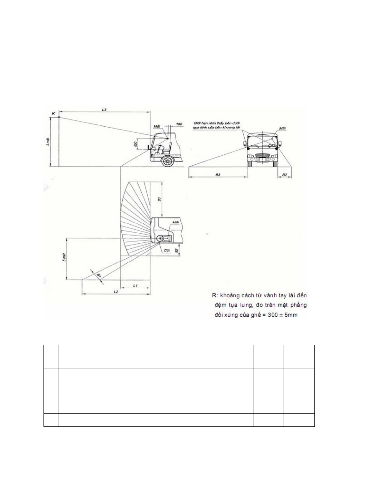 2.4.4. Các chỉ tiêu đánh giá tầm nhìn người lái được minh hoạ tại Hình 2 và quy định trong Bảng 1.