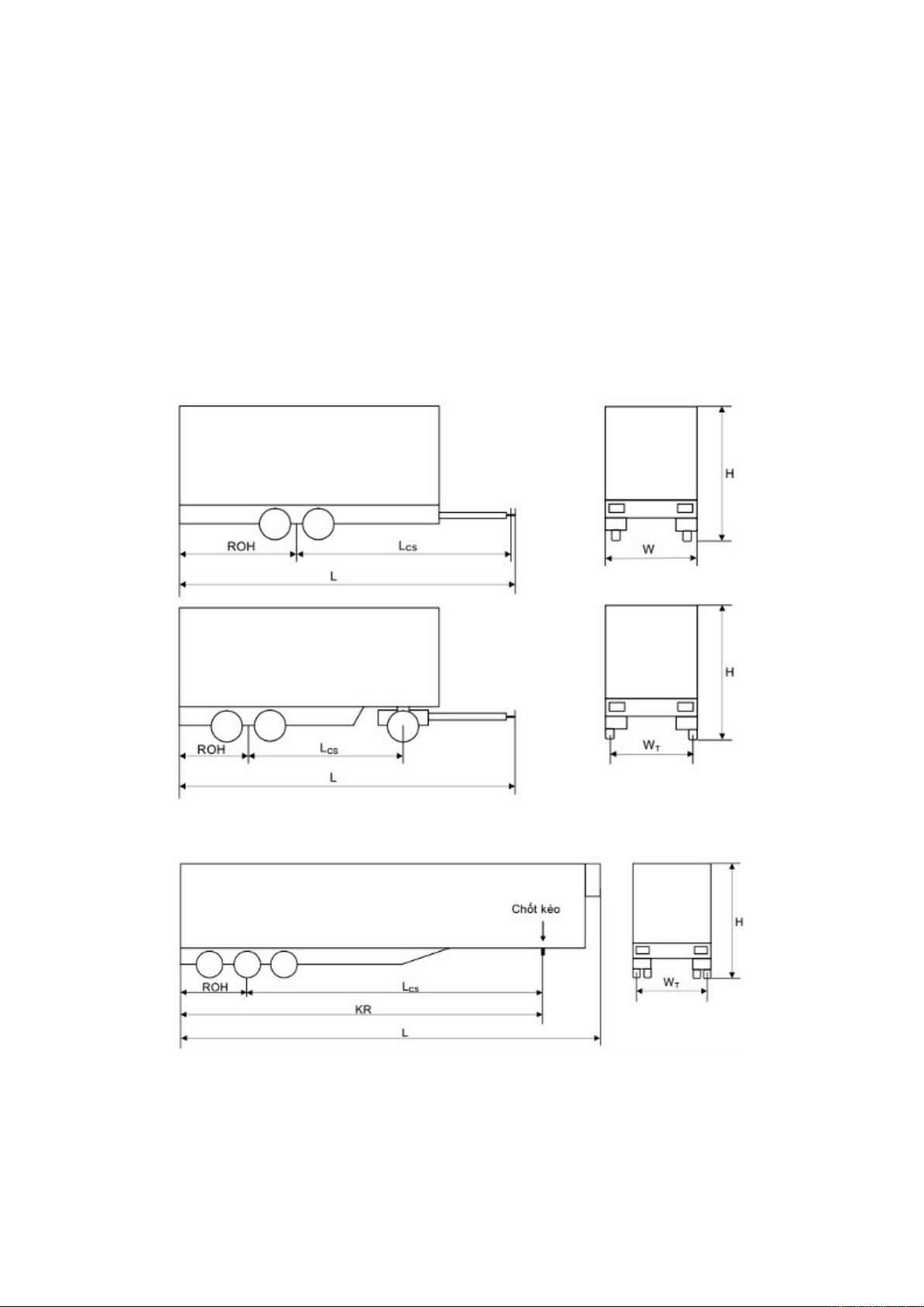 Trong đó: L - Chiều dài toàn bộ; LCS - Chiều dài cơ sở; ROH - Chiều dài đuôi xe tính toán;