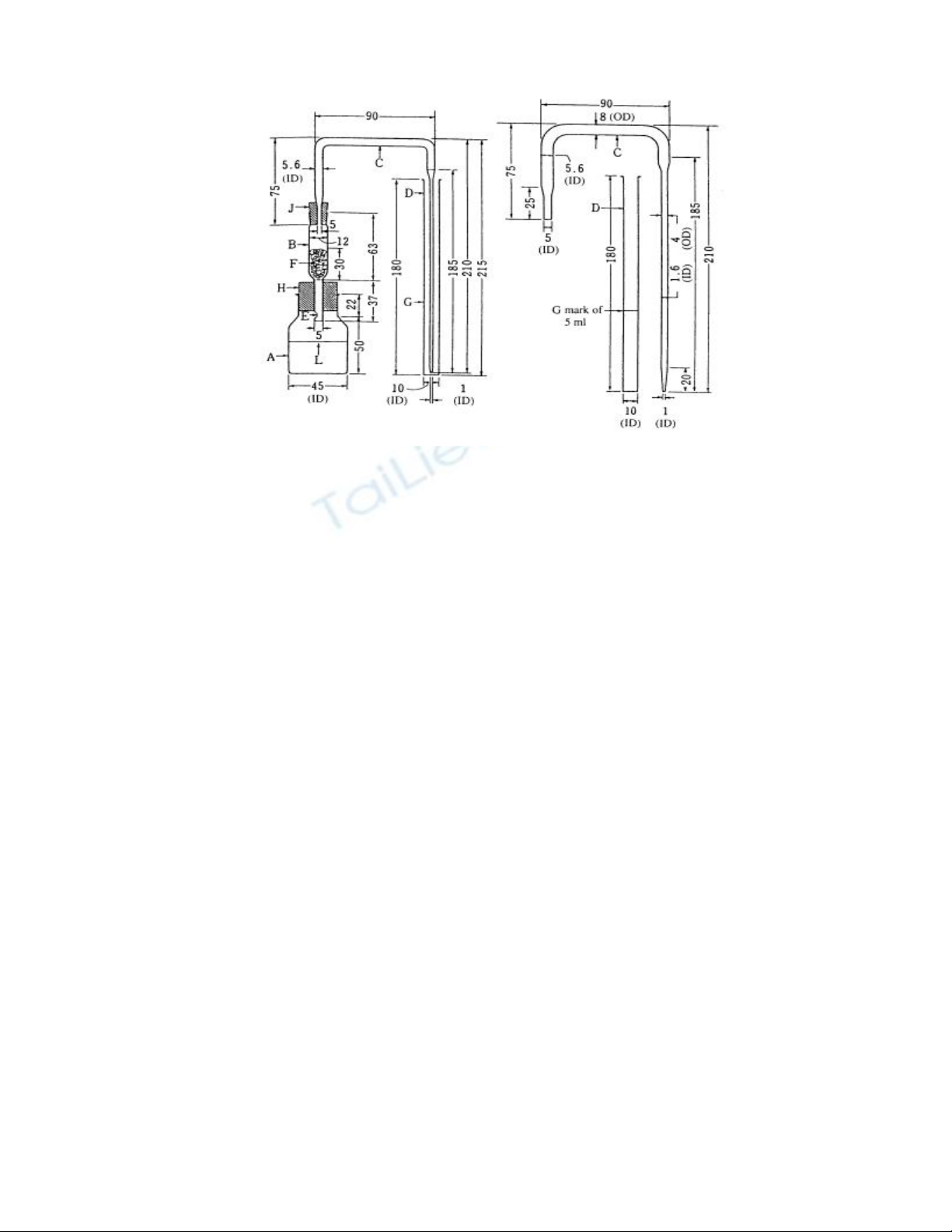 - Phép thử đuợc tiến hành trên thiết bị đuợc mô tả như trên, cho một ít bông thủy tinh vào ống dẫm
