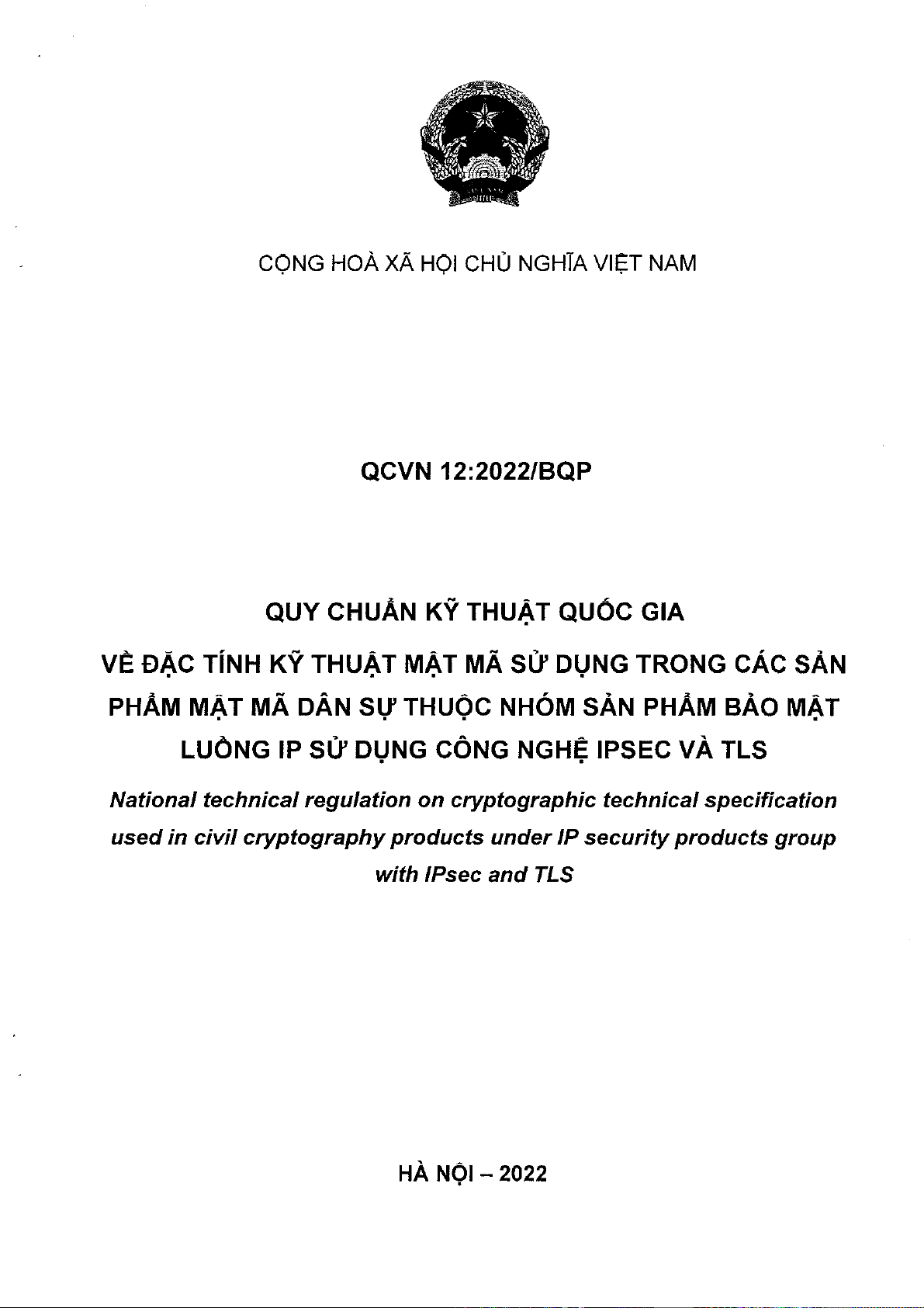 Trong bối cảnh hội nhập số hóa sâu rộng, an ninh mạng và bảo vệ thông tin trở thành ưu tiên hàng đầu cho mọi tổ chức và cá nhân. Sự gia tăng các mối đe dọa trực tuyến đòi hỏi các giải pháp bảo mật mạnh mẽ, đặc biệt trong việc truyền dữ liệu qua mạng Internet Protocol (IP). Quy chuẩn kỹ thuật quốc gia QCVN 12:2022/BQP ra đời nhằm thiết lập các tiêu chuẩn kỹ thuật thiết yếu cho các sản phẩm mật mã dân sự, tập trung vào bảo mật luồng IP thông qua việc ứng dụng công nghệ IPsec và TLS. Văn bản này đóng vai trò quan trọng trong việc đảm bảo tính toàn vẹn, bảo mật và xác thực của thông tin không thuộc phạm vi bí mật nhà nước, góp phần xây dựng một không gian mạng an toàn và đáng tin cậy tại Việt Nam.