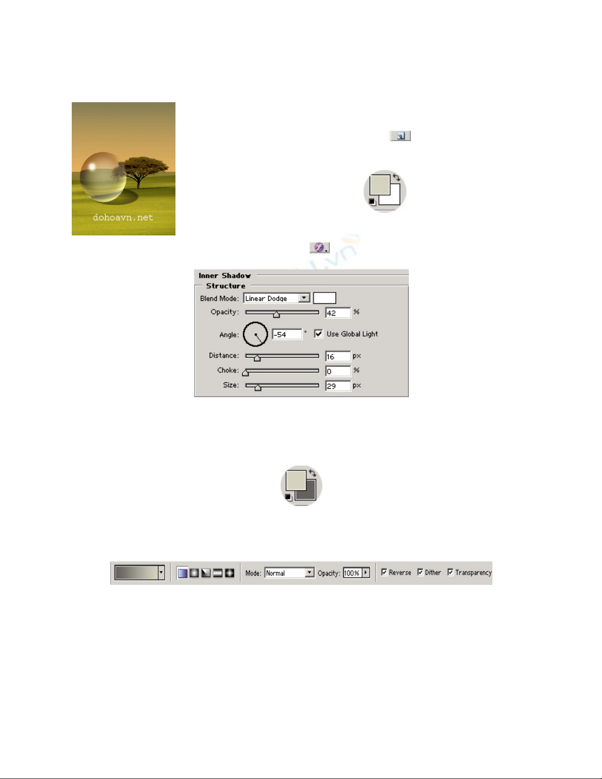 Chọn công cụ Gradient Tool trong thanh Options bạn chọn Radial Gradient và bỏ chọn Reverse