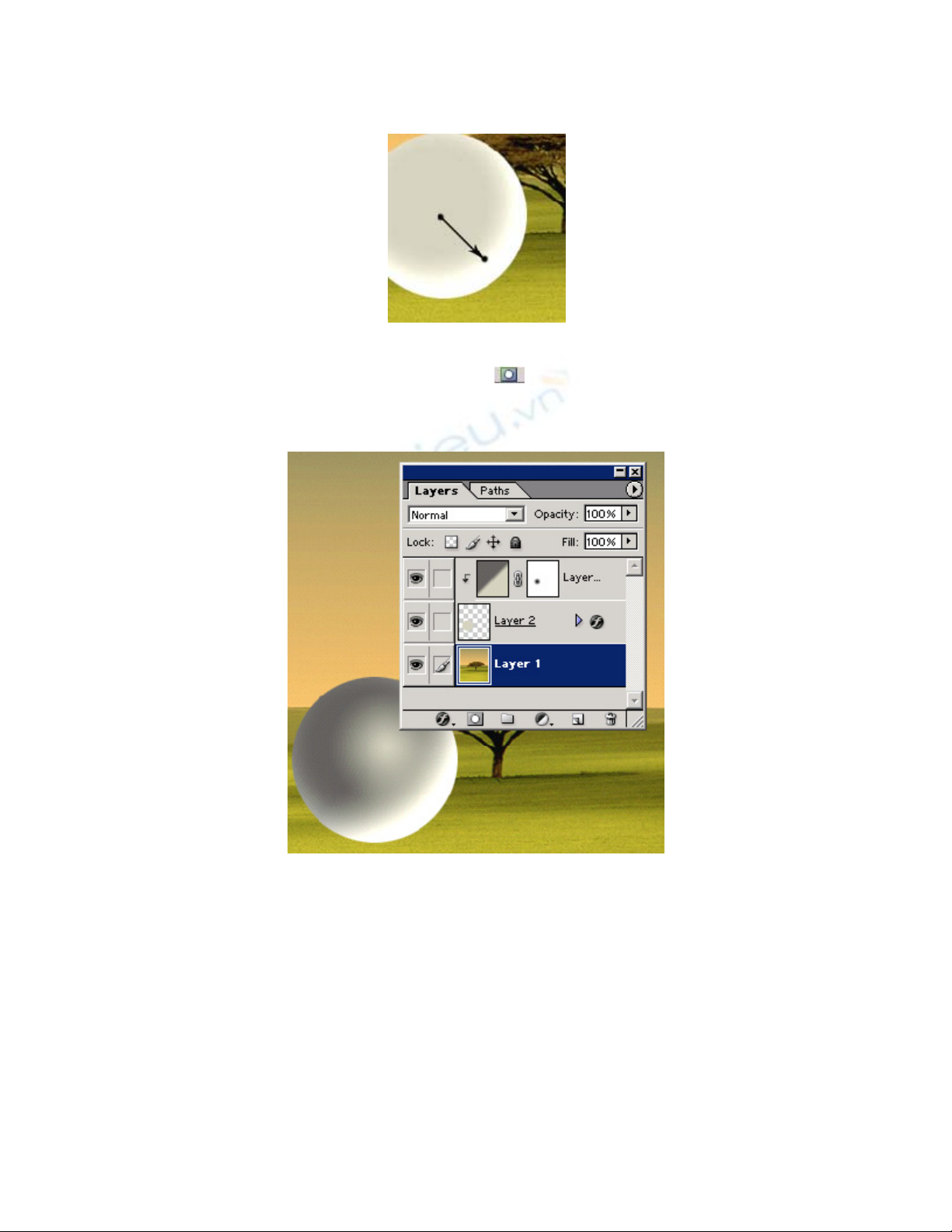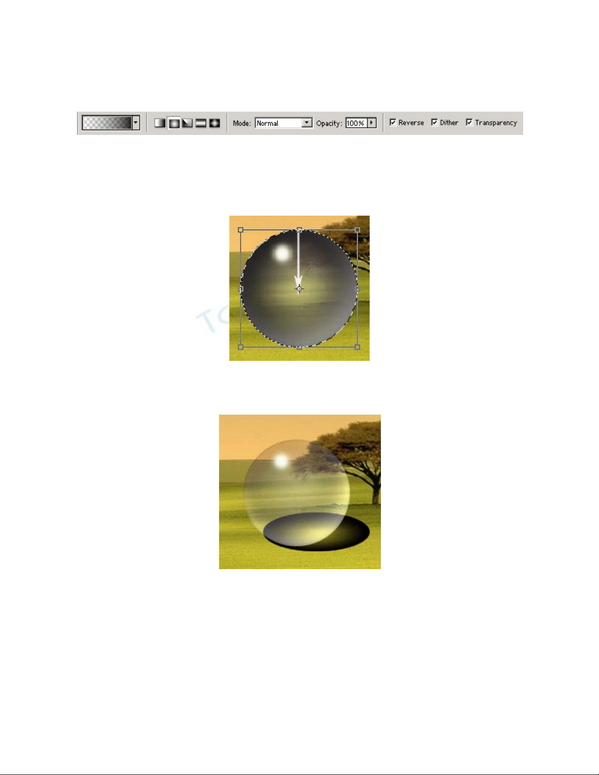 Click vào giữa và kéo ra đến rìa của hình tròn để tạo một vùng sáng trong quả cầu.