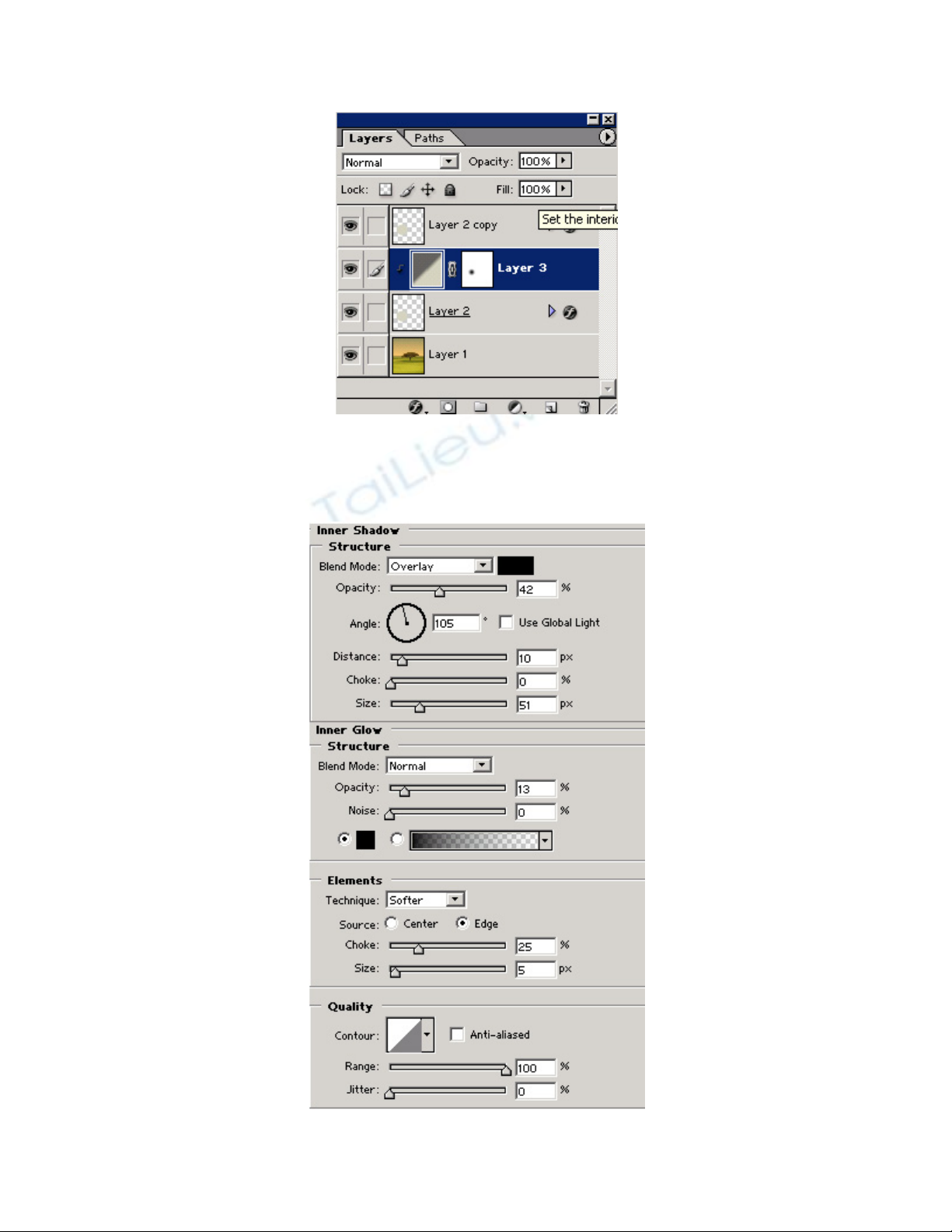 Thêm Style cho lớp mới bạn click vào biểu tượng và chọn Inner Shadow với thiết lập: