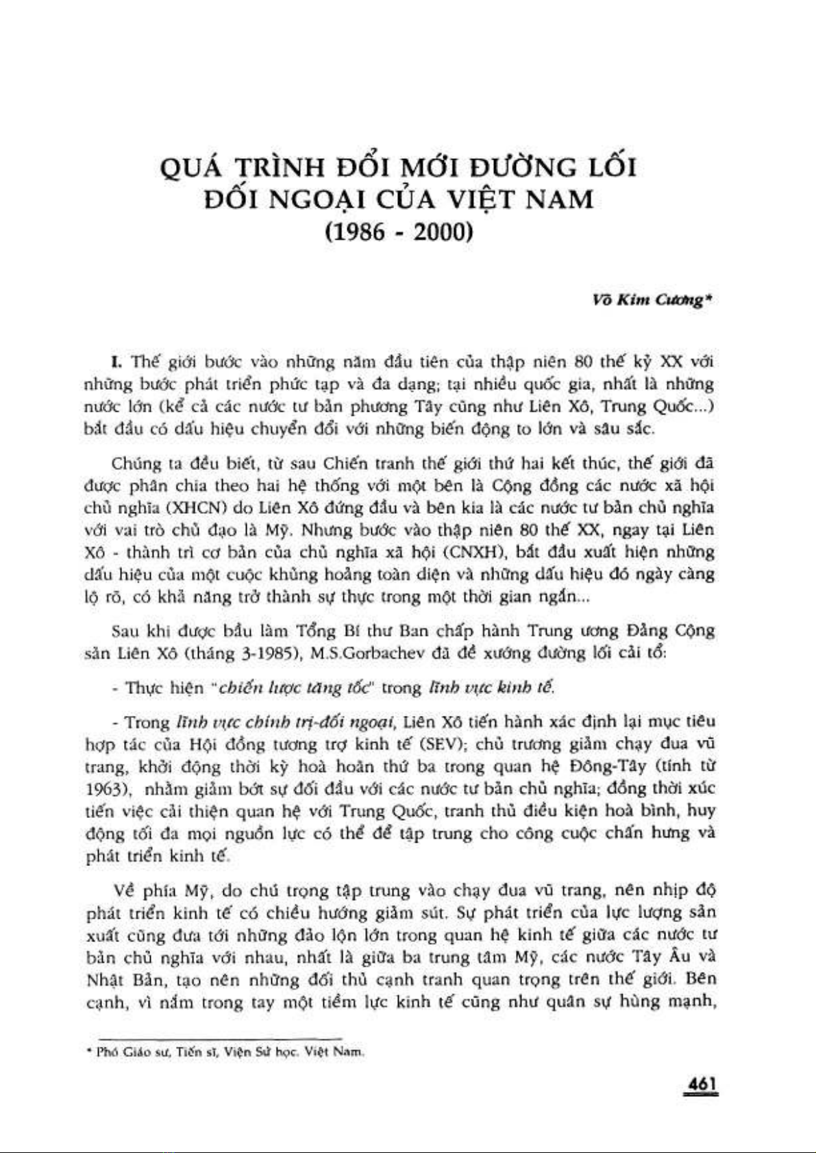 Quá trình đổi mới đường lối đối ngoại của Việt Nam (1986 - 2000) đề ra những chiến lược, đường lối đổi mới để phát triển trong các lĩnh vực như kinh tế, chính trị - đối ngoại, đánh dấu bước ngoặt cơ bản trong cự nghiệp xây dựng chủ nghĩa xã hội ở Việt Nam, thể hiện bước chuyển biến trong nhận thức của Đảng về chủ nghĩa xã hội, về thời kỳ quá độ. Để biết rõ hơn về nội dung, mời các bạn cùng xem và tham khảo.