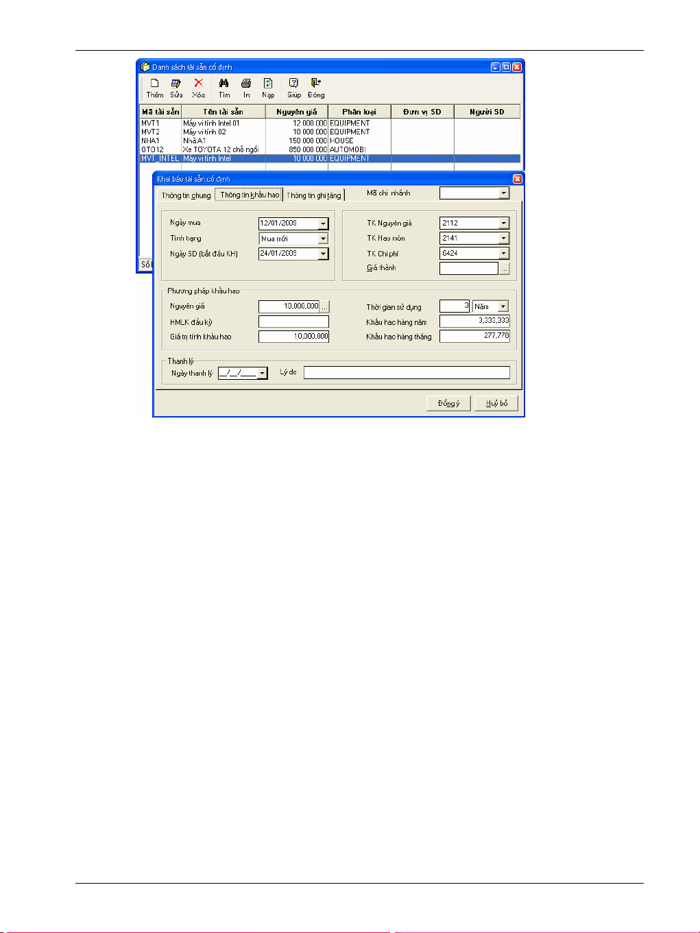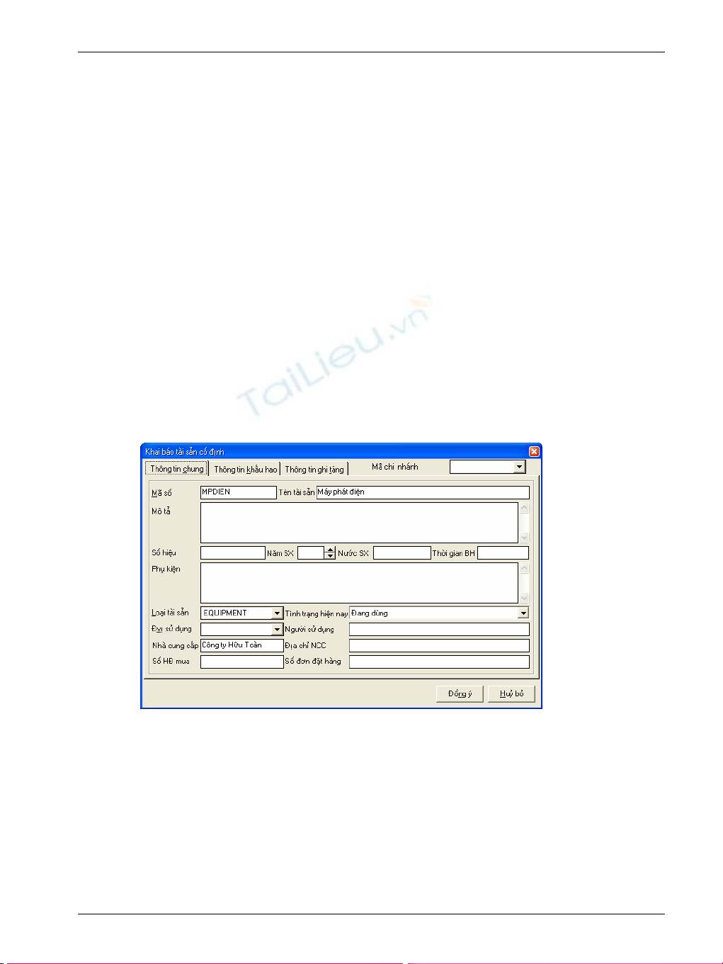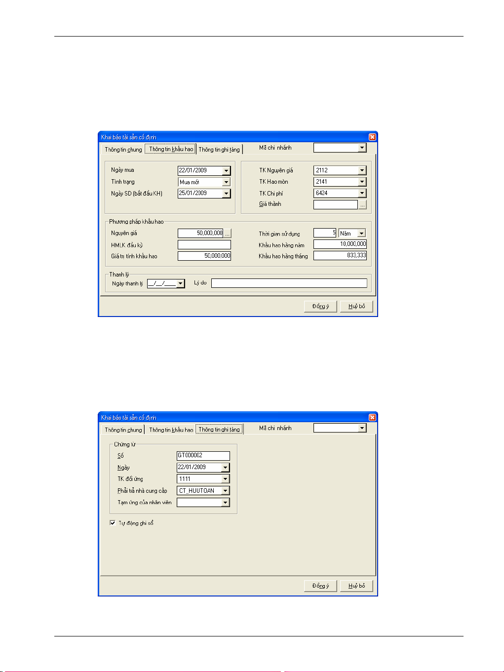 Khai báo Thông tin khấu hao: cho phép nhập các thông tin chi tiết về
