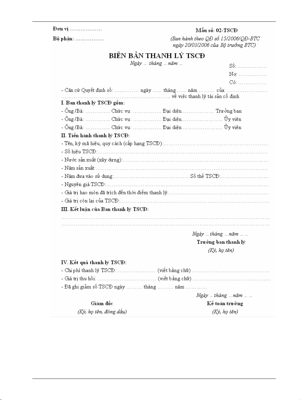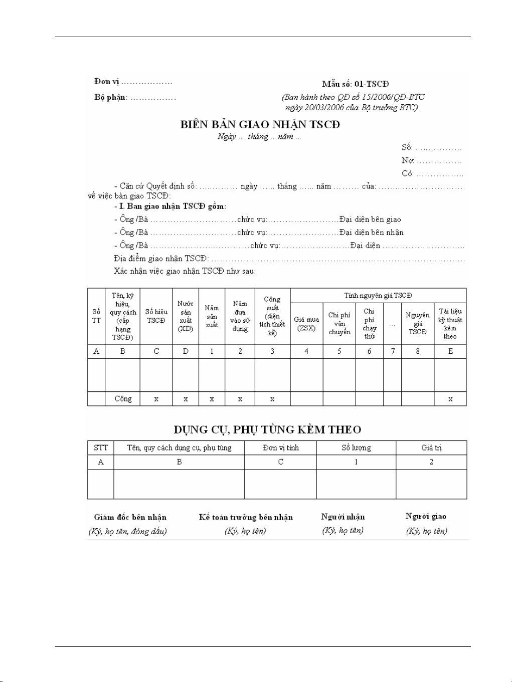 - Biên bản bàn giao TSCĐ sửa chữa lớn hoàn thành.
